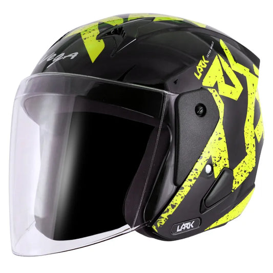 VEGA Lark Victor Black Neon Yellow Half Face Helmet