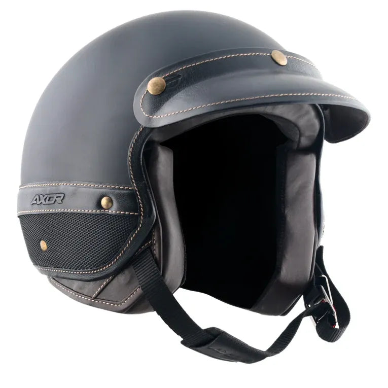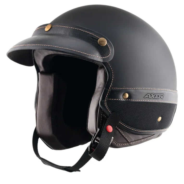 AXOR Retro Jet Alpha Dull Black Half Face Helmet