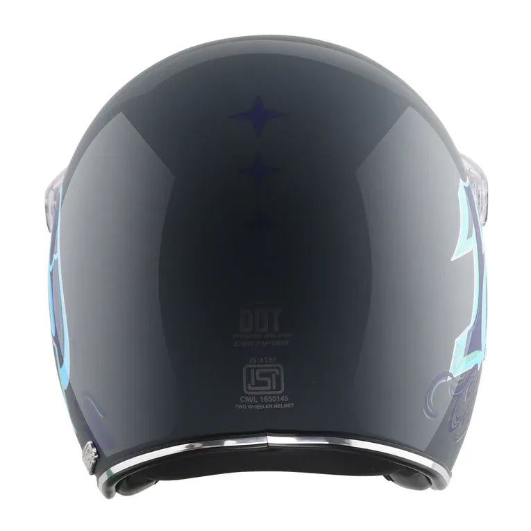 AXOR Retro Jet Sportz C13 Anthena Grey Blue Half Face Helmet