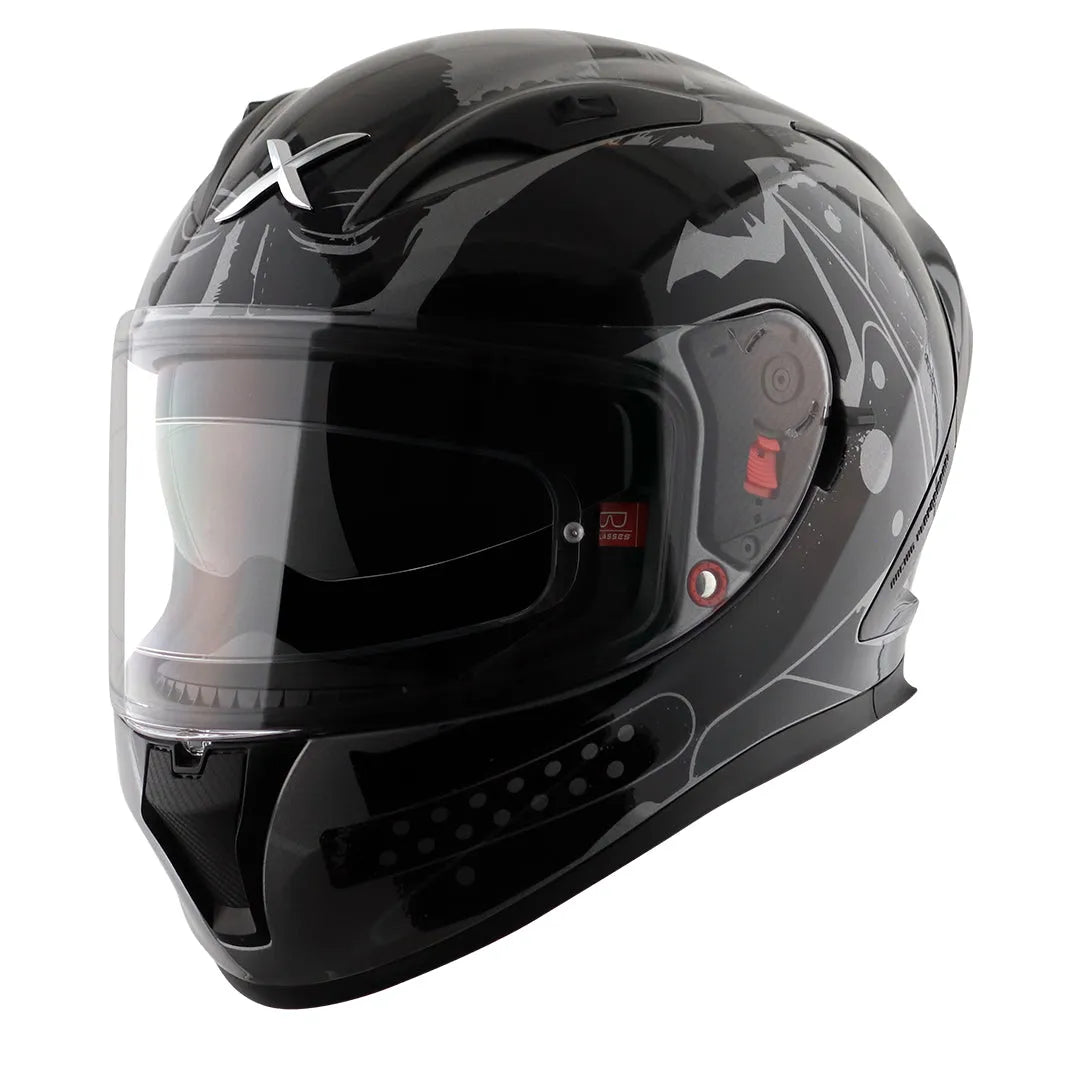 DC Comics, Inc. is a leading American comic book publisher and the flagship unit of DC Entertainment, a subsidiary of Warner Bros. Axor Helmets is the first brand in India to collaborate with DC Comics, bringing an exclusive range of helmets featuring iconic DC characters. Axor now presents the Batman Helmet, inspired by the Dark Knight—a symbol of justice, strength, and vigilance. The Axor Street Helmet is a perfect blend of performance and comfort, ideal for both touring and track riders. Its ultra-wide visor offers 70% more downward visibility than standard helmets, ensuring a panoramic view. Designed for stability, it features an aerodynamic spoiler and 3-layer density cheek pads for a secure, comfortable fit. Experience unmatched clarity and riding excellence with the Axor Street Helmet.