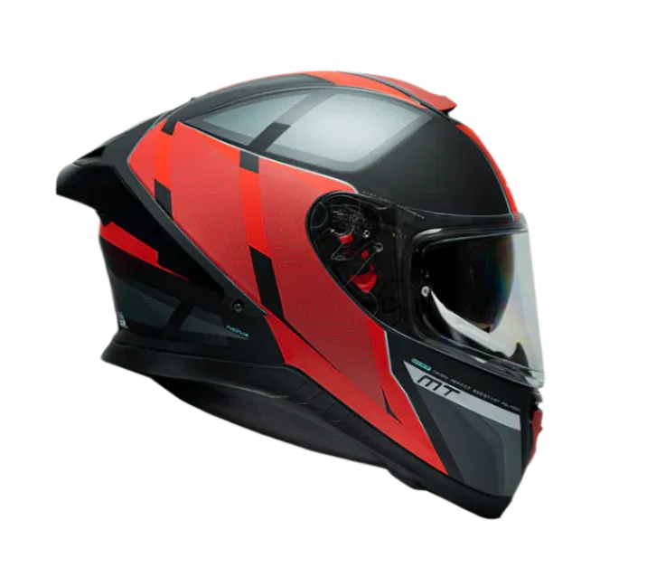 THE MT THUNDER 3 SV NOVA B5 MATT FULL FACE HELMET IS A PREMIUM RIDING GEAR DESIGNED FOR MODERN RIDERS WHO DEMAND STYLE, COMFORT, AND MAXIMUM SAFETY. WITH ITS MATTE FINISH AND AERODYNAMIC SHELL, THIS HELMET IS ENGINEERED USING A HIGH-IMPACT POLYMER OUTER SHELL AND DUAL-DENSITY EPS LINER FOR SUPERIOR IMPACT PROTECTION. IT WEIGHS APPROXIMATELY 1550 GRAMS (±50G), MAKING IT IDEAL FOR LONG RIDES WITHOUT CAUSING DISCOMFORT. THE HELMET IS DOT AND ECE 22.05 CERTIFIED AND HAS EARNED A 4-STAR SHARP RATING, ENSURING TOP-TIER SAFETY. IT FEATURES A DROP-DOWN INTERNAL SUN VISOR AND A SCRATCH-RESISTANT, OPTICAL-GRADE CLEAR VISOR THAT IS PINLOCK-READY FOR ANTI-FOG INSERTS. THE ADVANCED VENTILATION SYSTEM AND INTEGRATED SPOILERS ENHANCE AIRFLOW AND STABILITY, REDUCING RIDER FATIGUE. INSIDE, IT OFFERS A HYPOALLERGENIC, MOISTURE-WICKING, AND FULLY REMOVABLE LINER FOR HYGIENE AND COMFORT, ALONG WITH A SECURE MICROMETRIC BUCKLE FASTENING SYSTEM. PERFECT FOR BOTH DAILY COMMUTING AND TOURING, THIS HELMET BALANCES PERFORMANCE WITH A BOLD DESIGN.