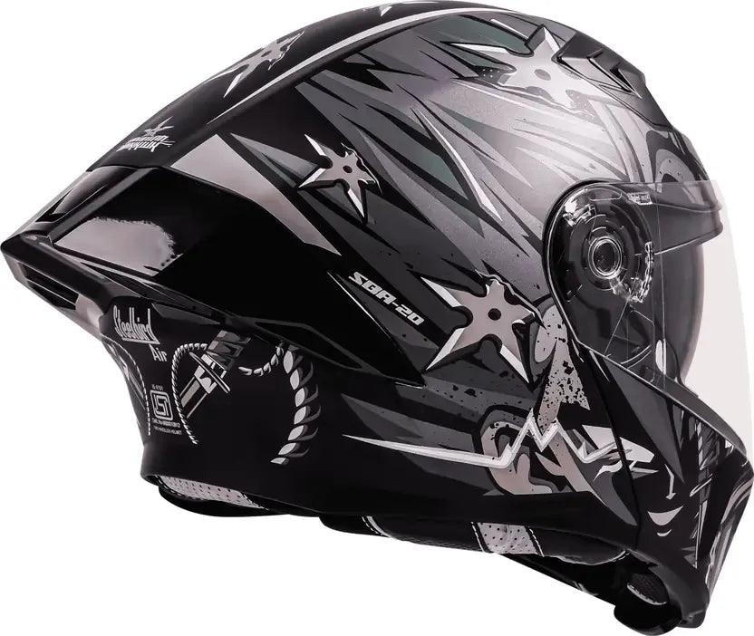 STEELBIRD SBA 20 DARK WARRIOR BLACK GREY FULL FACE HELMET
