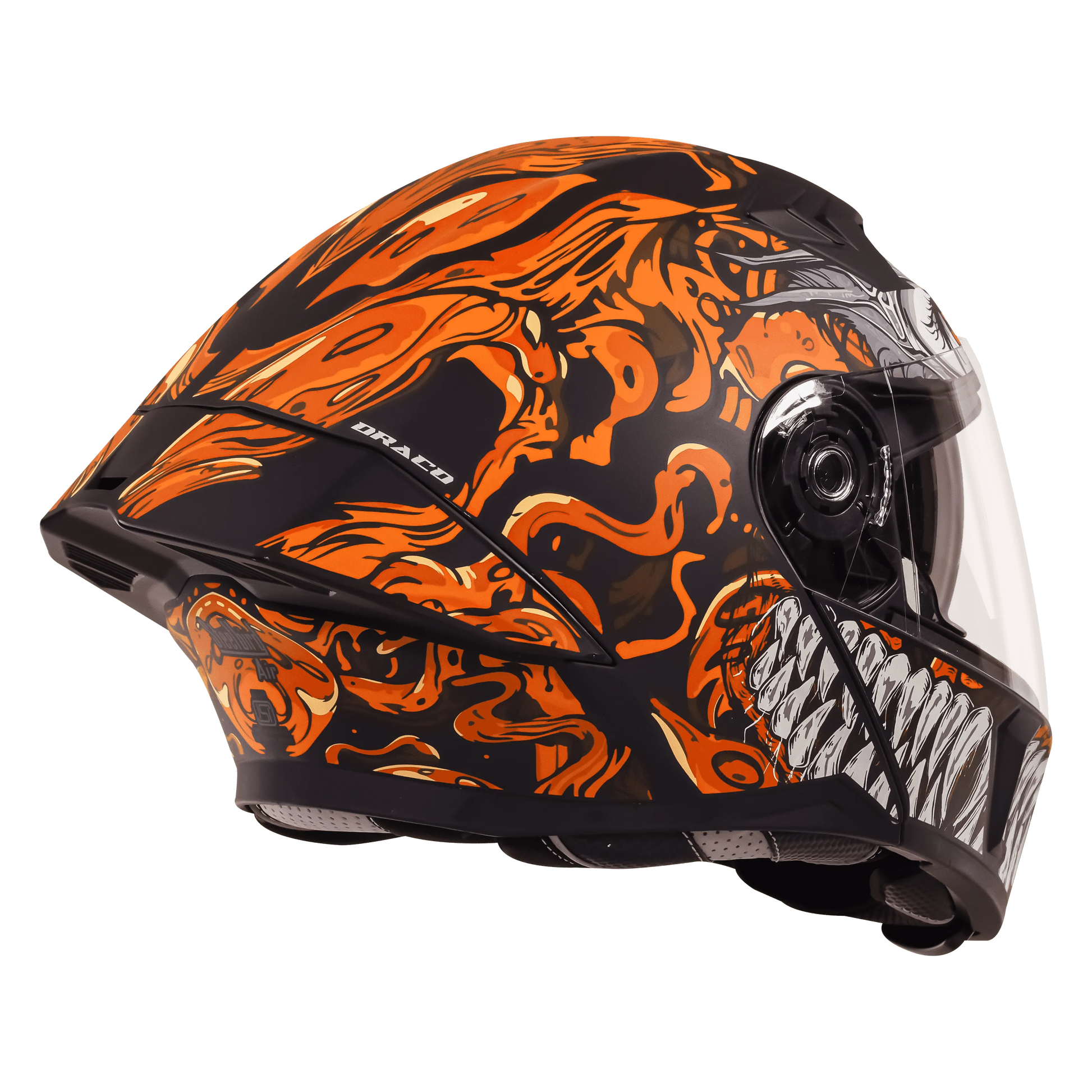 The STEELBIRD Sba 20 Draco Matt Orange Flip Up Helmet blends bold style with adaptable functionality. Its flip up design makes it a practical choice for city commuting and long rides, providing comfort without compromising safety.