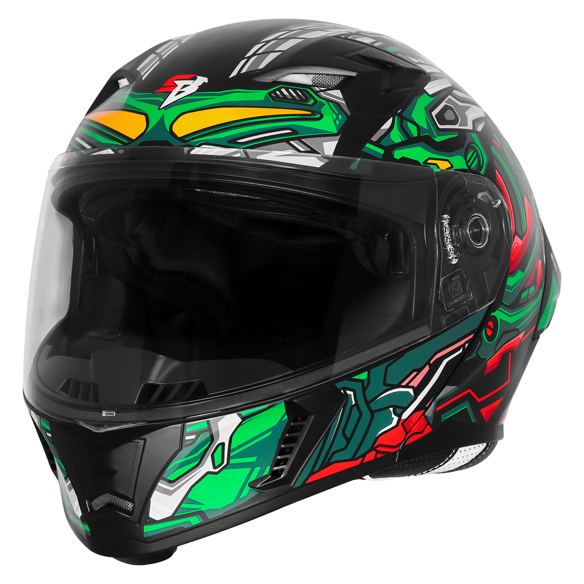 Ride with confidence using the Steelbird SBA 20 Robo Black Green Full Face Helmet, combining certified safety, comfort, and stylish performance.