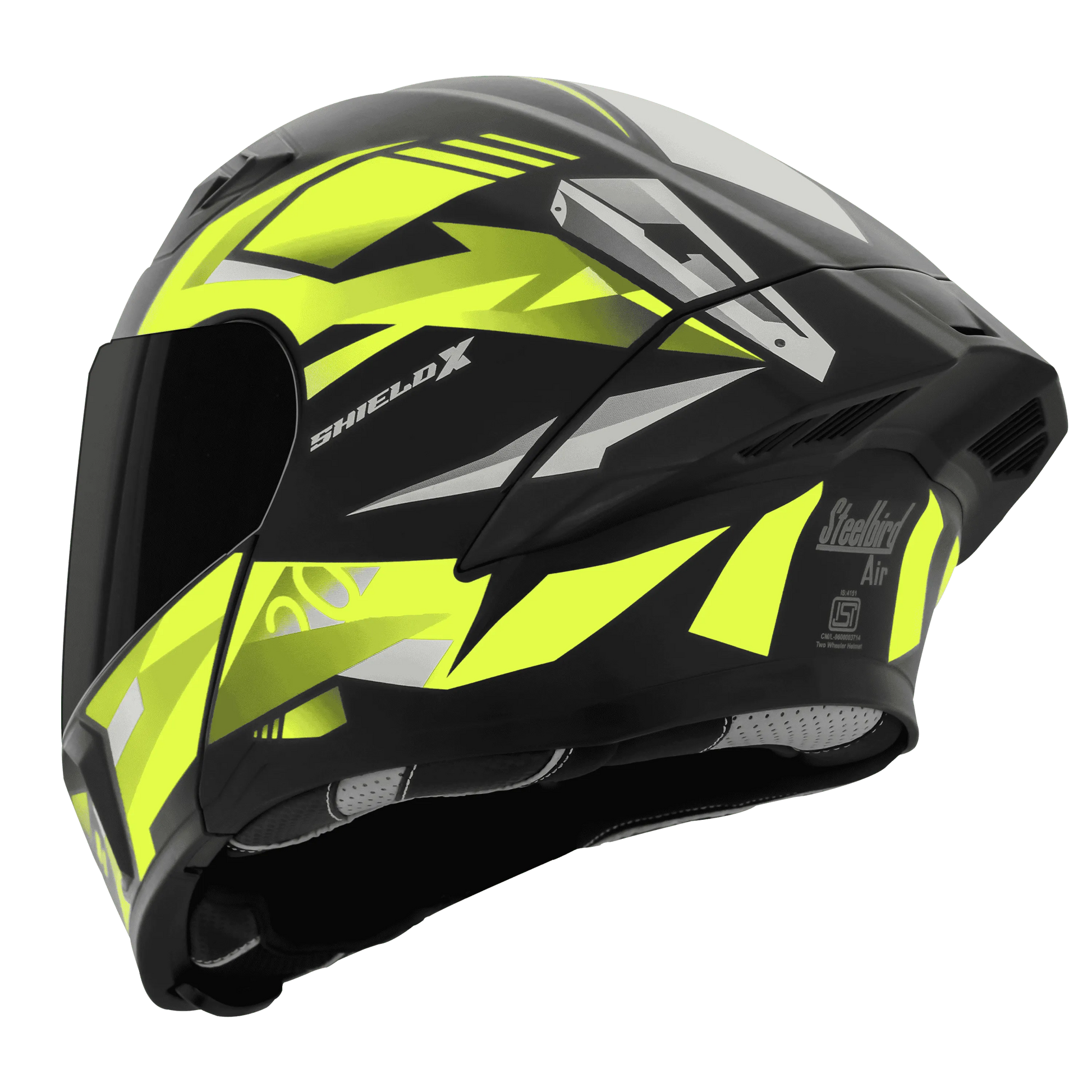 STEELBIRD Sba 20 Shield X Glossy Black Neon Full Face Helmet