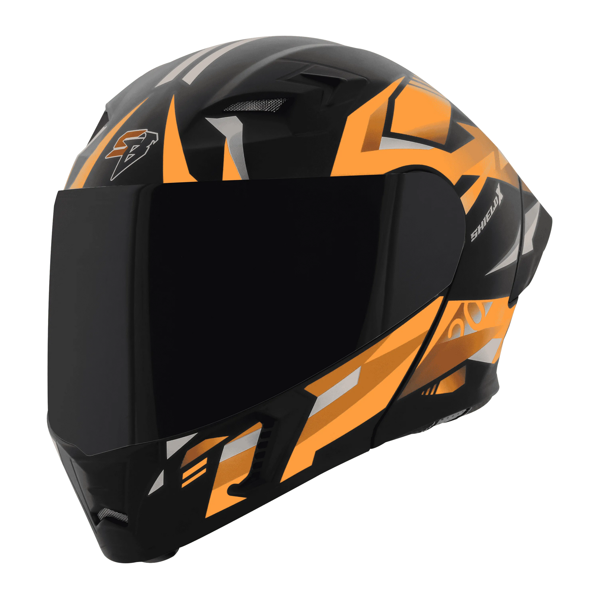 Steelbird SBA-20 Shield X Glossy Black Orange Flip Up Helmet