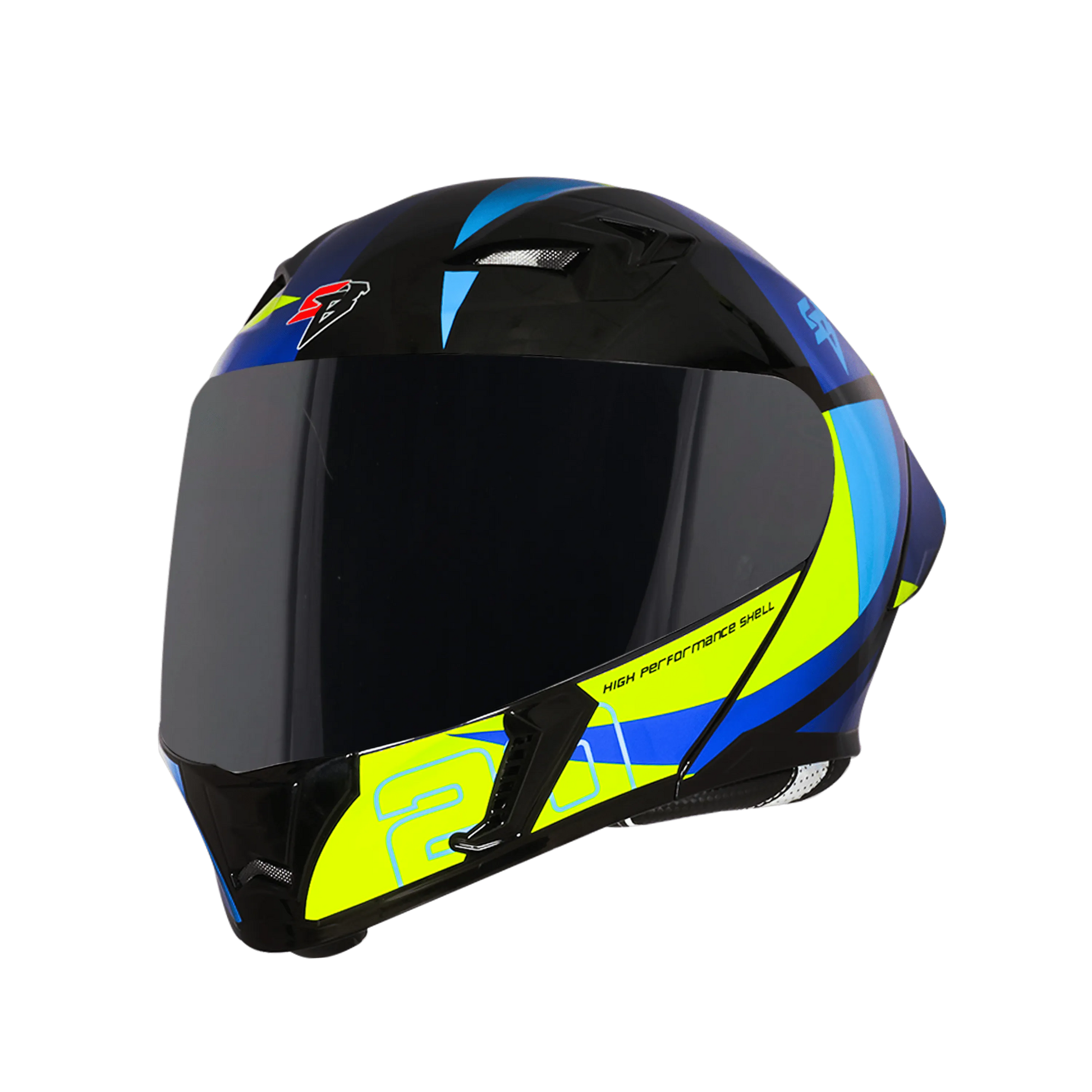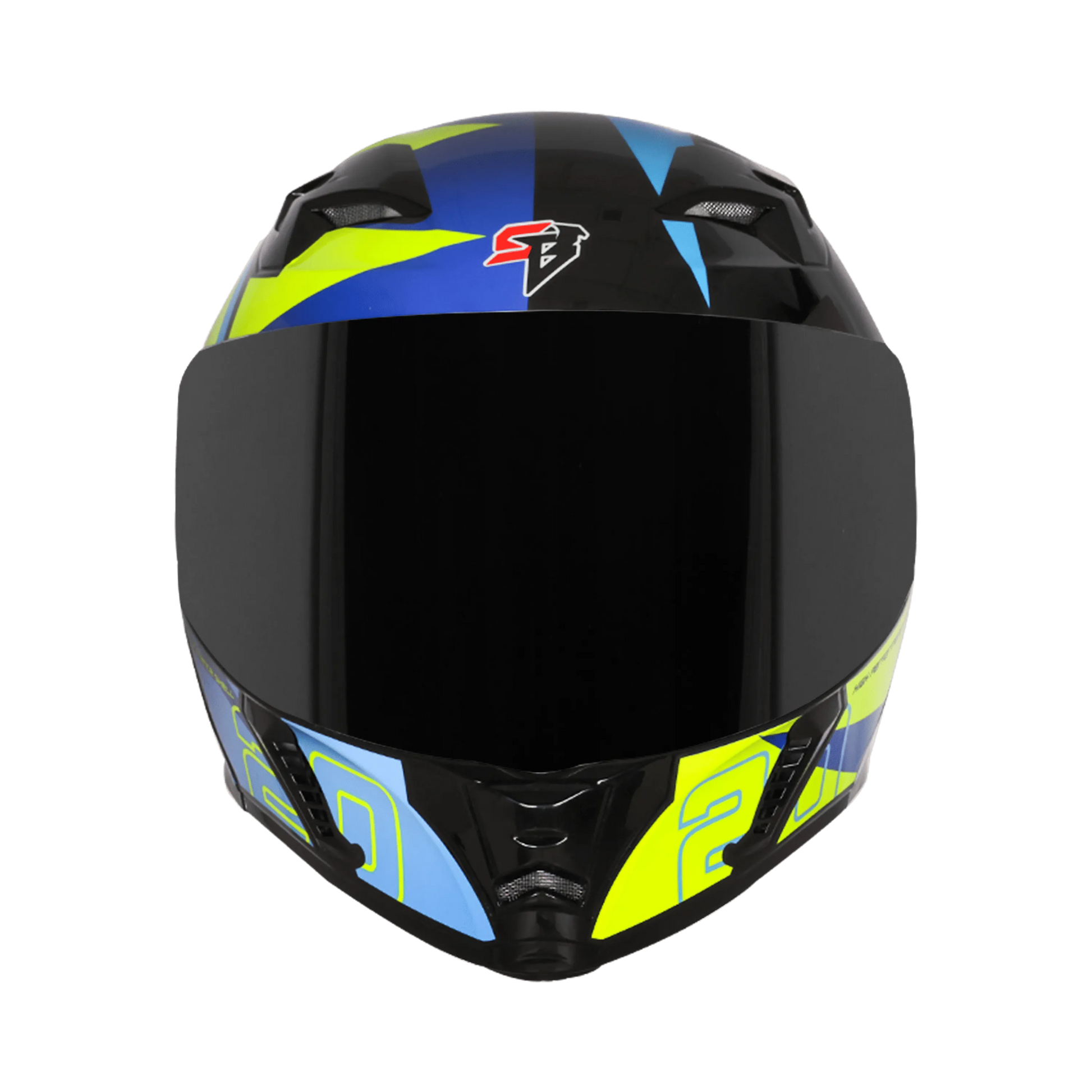 The SBA-20 Star series from Steelbird combines modern safety with eye-catching style. The bold star-themed graphic in a glossy black and blue finish adds flair to your ride, while its aerodynamic build ensures a smooth riding experience.
