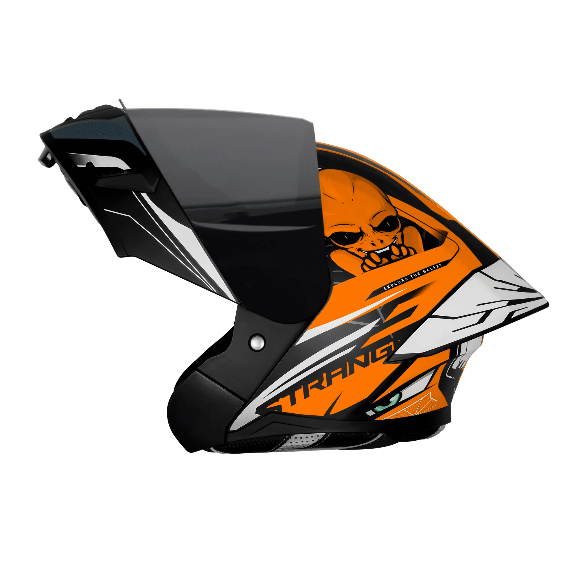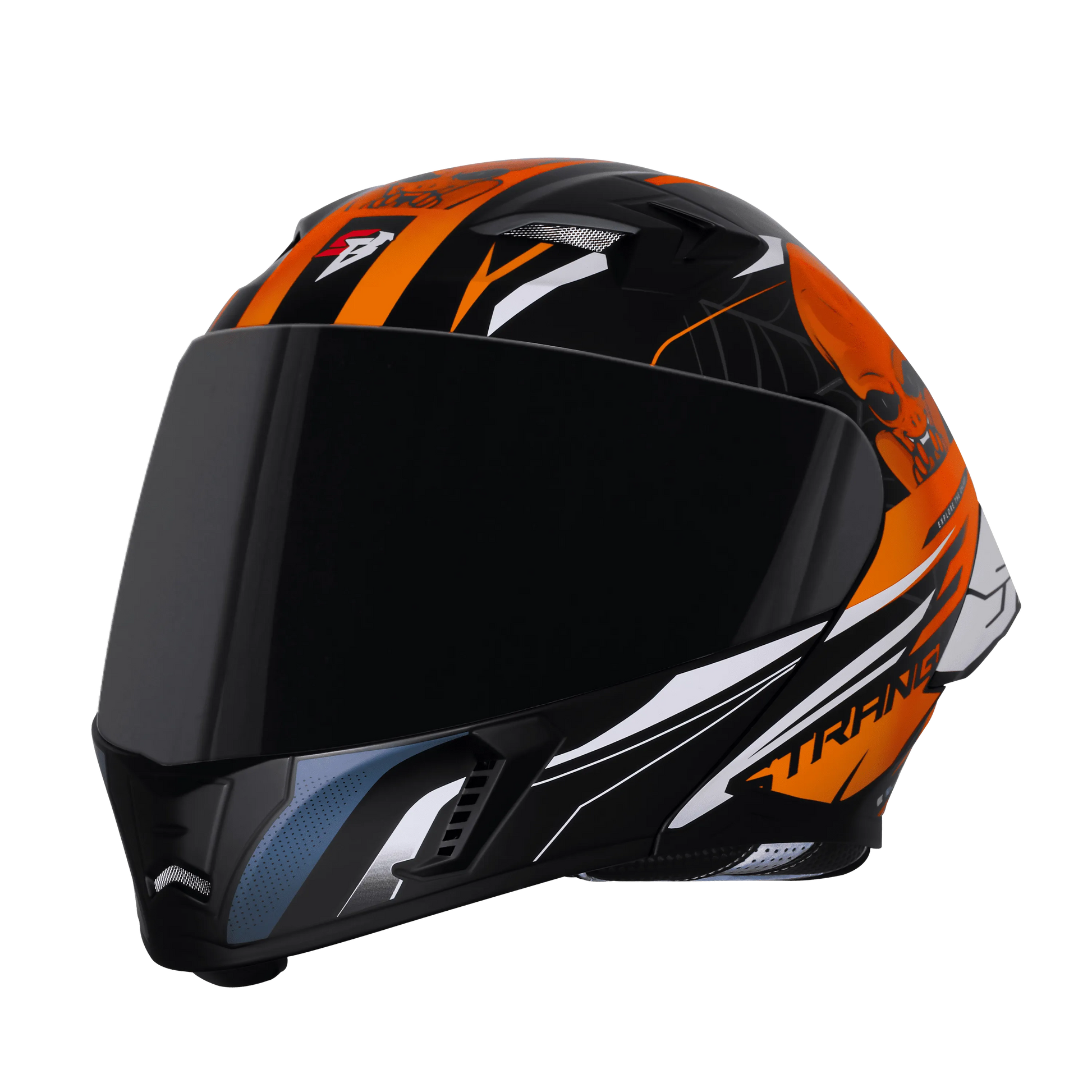The Steelbird SBA 20 Strance Black Orange Helmet combines aggressive looks, versatile flip-up functionality, and reliable safety, making it ideal for touring, city rides, and all-weather use.