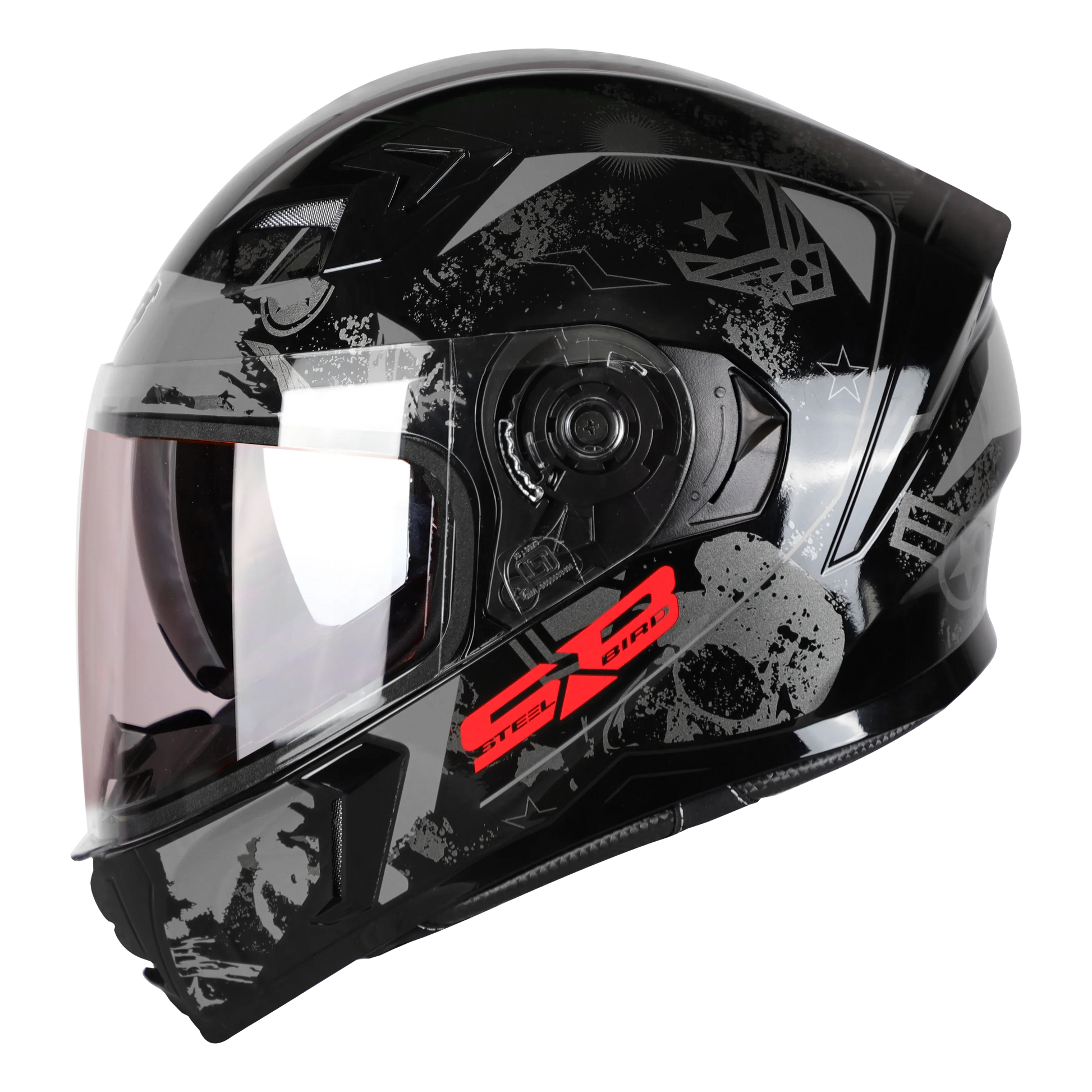 STEELBIRD Sba 21 Iss Combat Glossy Black Grey Full Face Helmet