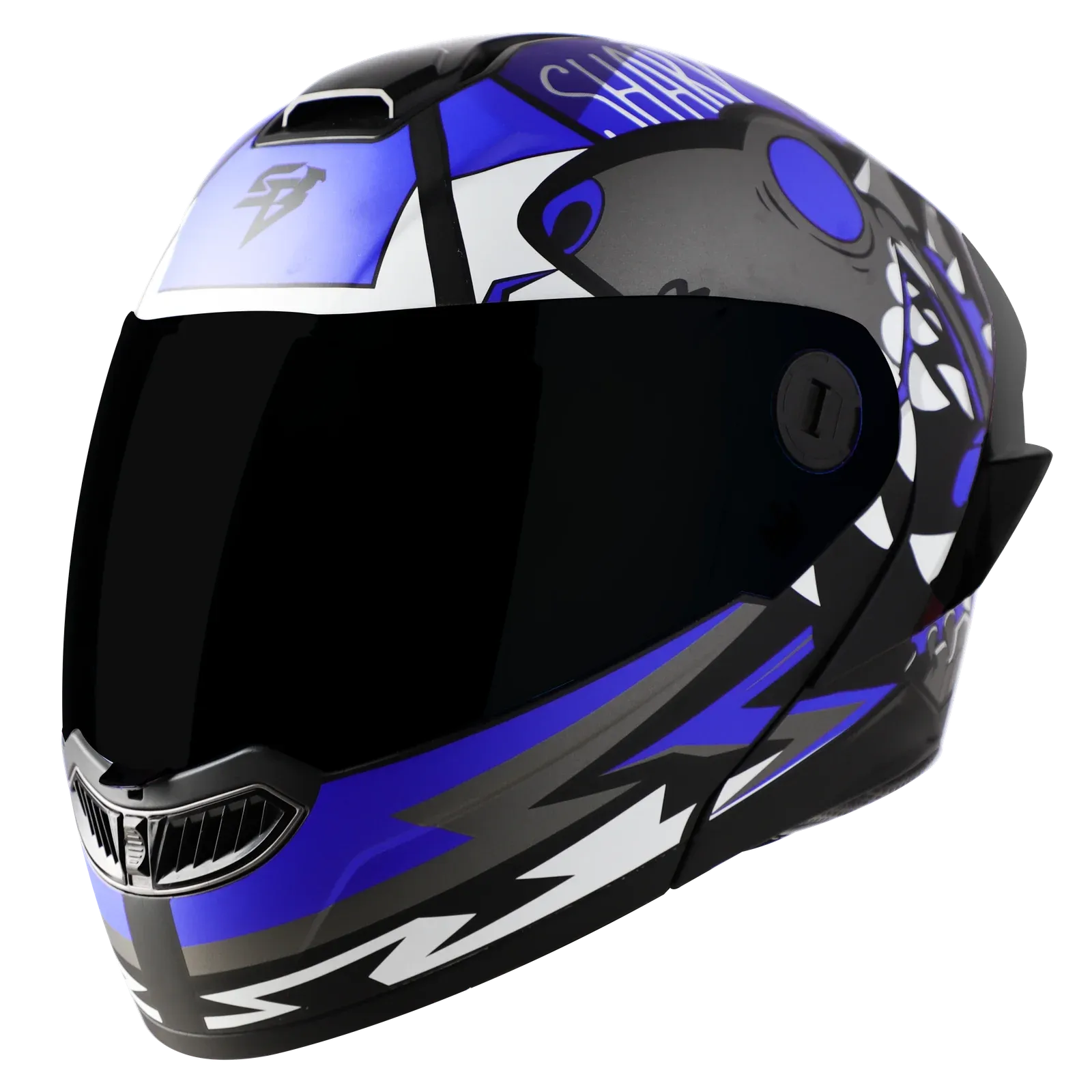 STEELBIRD Sba 8 Sharky Black Blue Flip Up Helmet