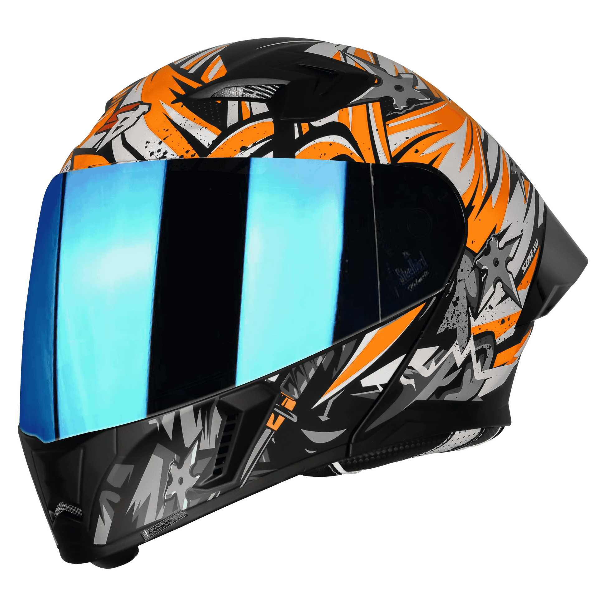 STEELBIRD Sba20 Dark Warrior Black Orange White Flip Up Helmet