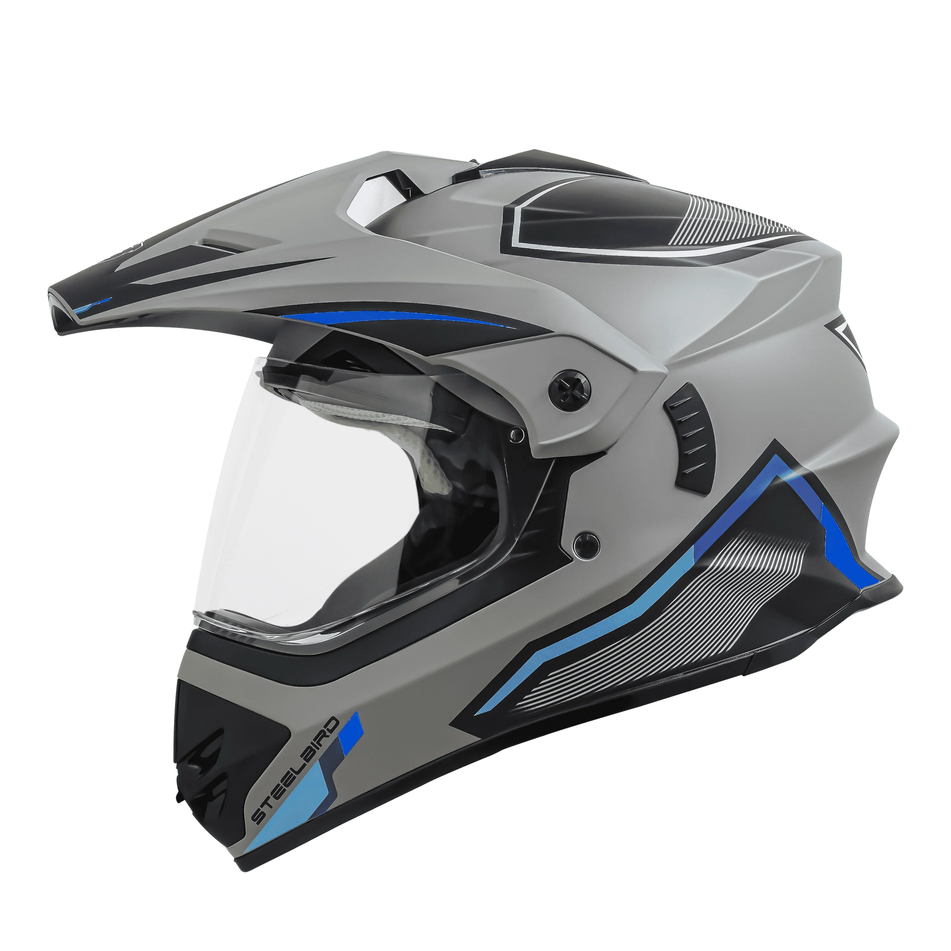 STEELBIRD Sbh 13 Racer Grey Blue Off Road Helmet