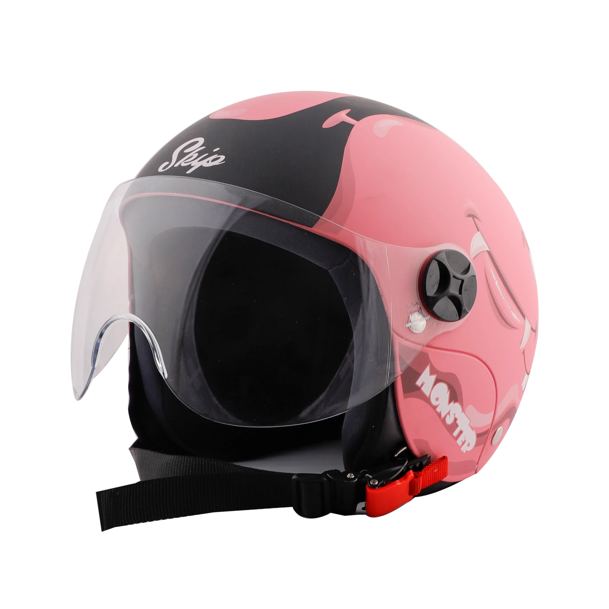 STEELBIRD SBH 16 TOAD PINK BLACK MD HALF FACE HELMET