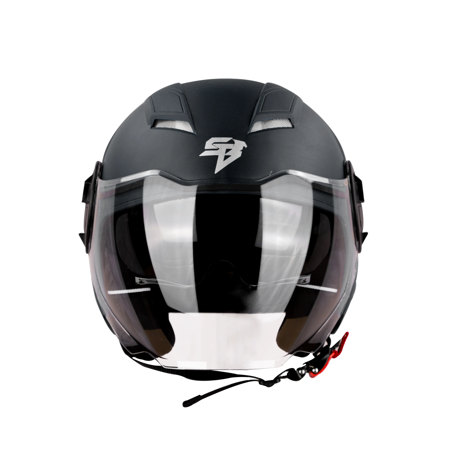 STEELBIRD SBH 31 DRX BLACK SMOKE SUN SHIELD HALF FACE HELMET
