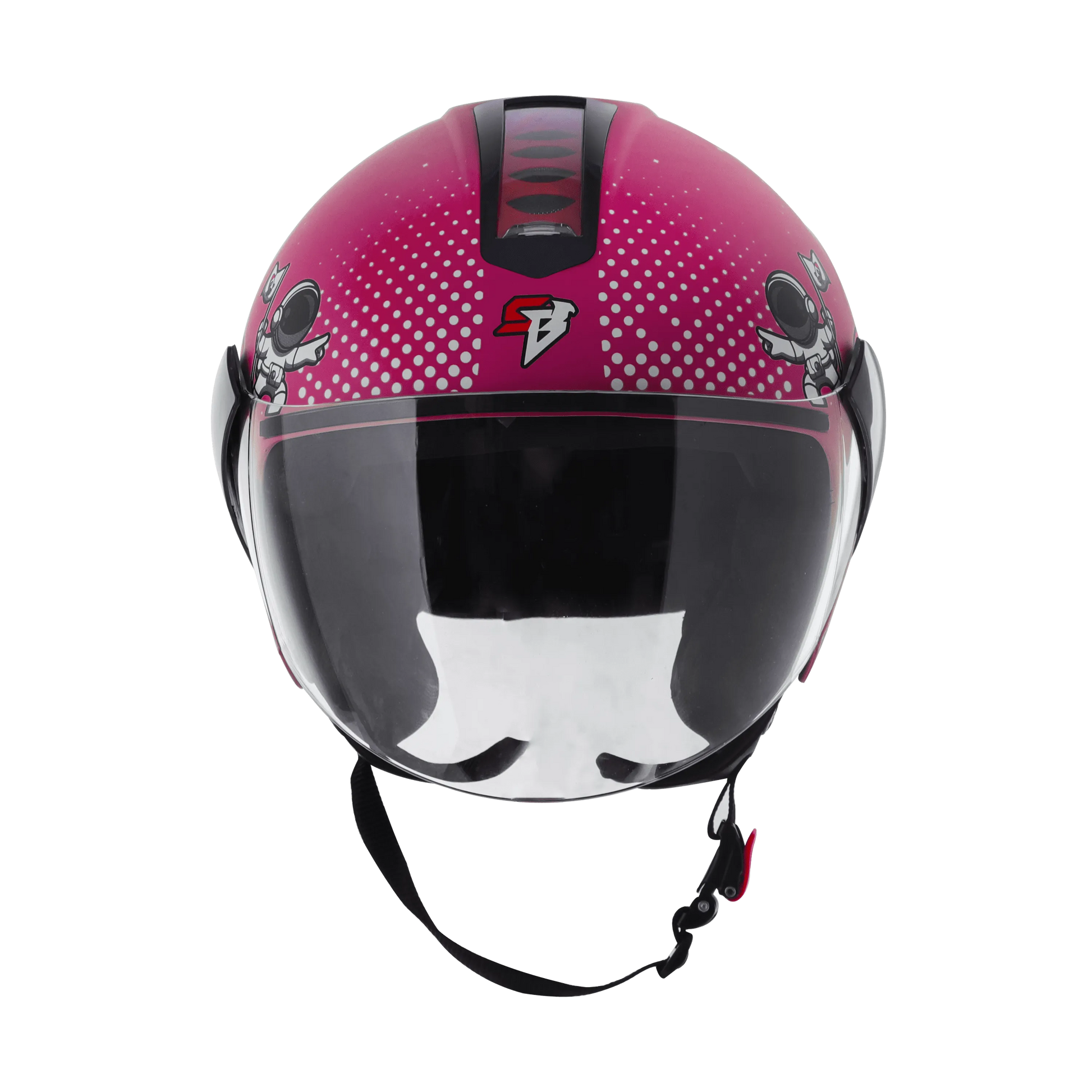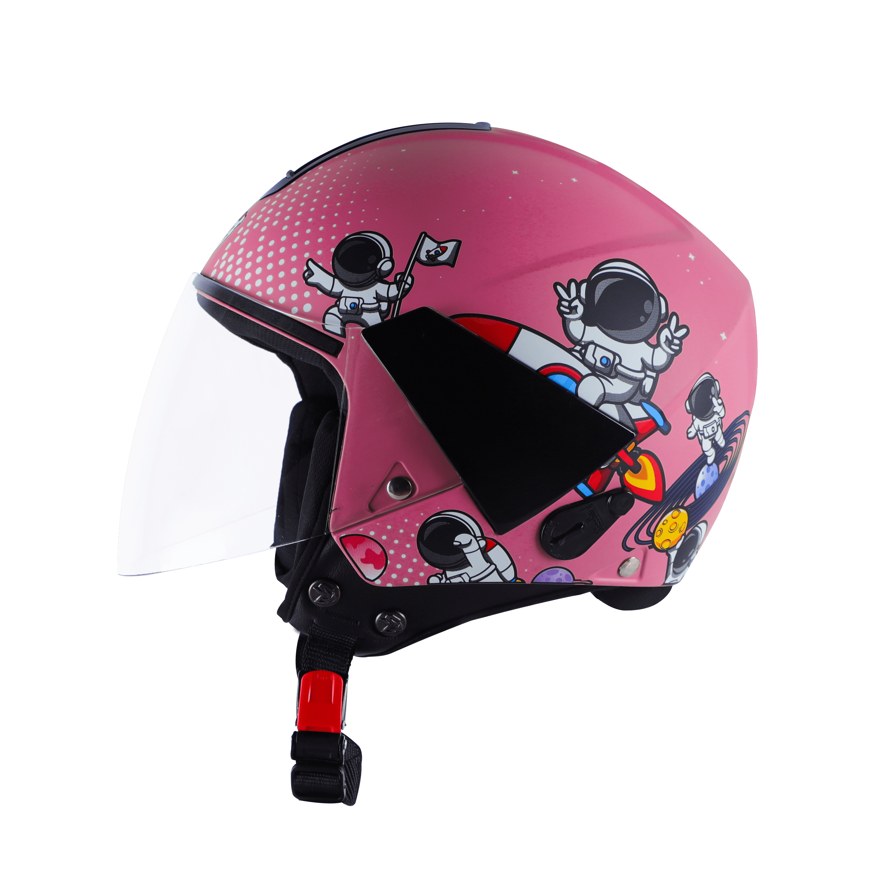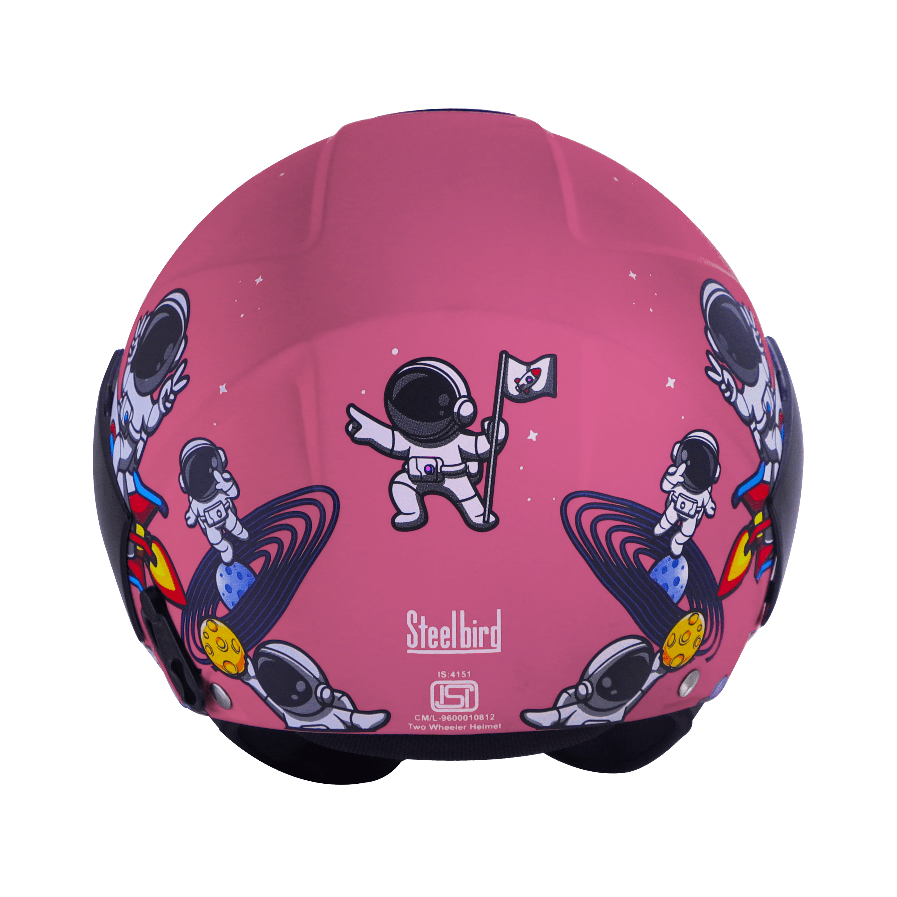 - Half Face Helmet with a bold Astronaut Matt Dark Pink design