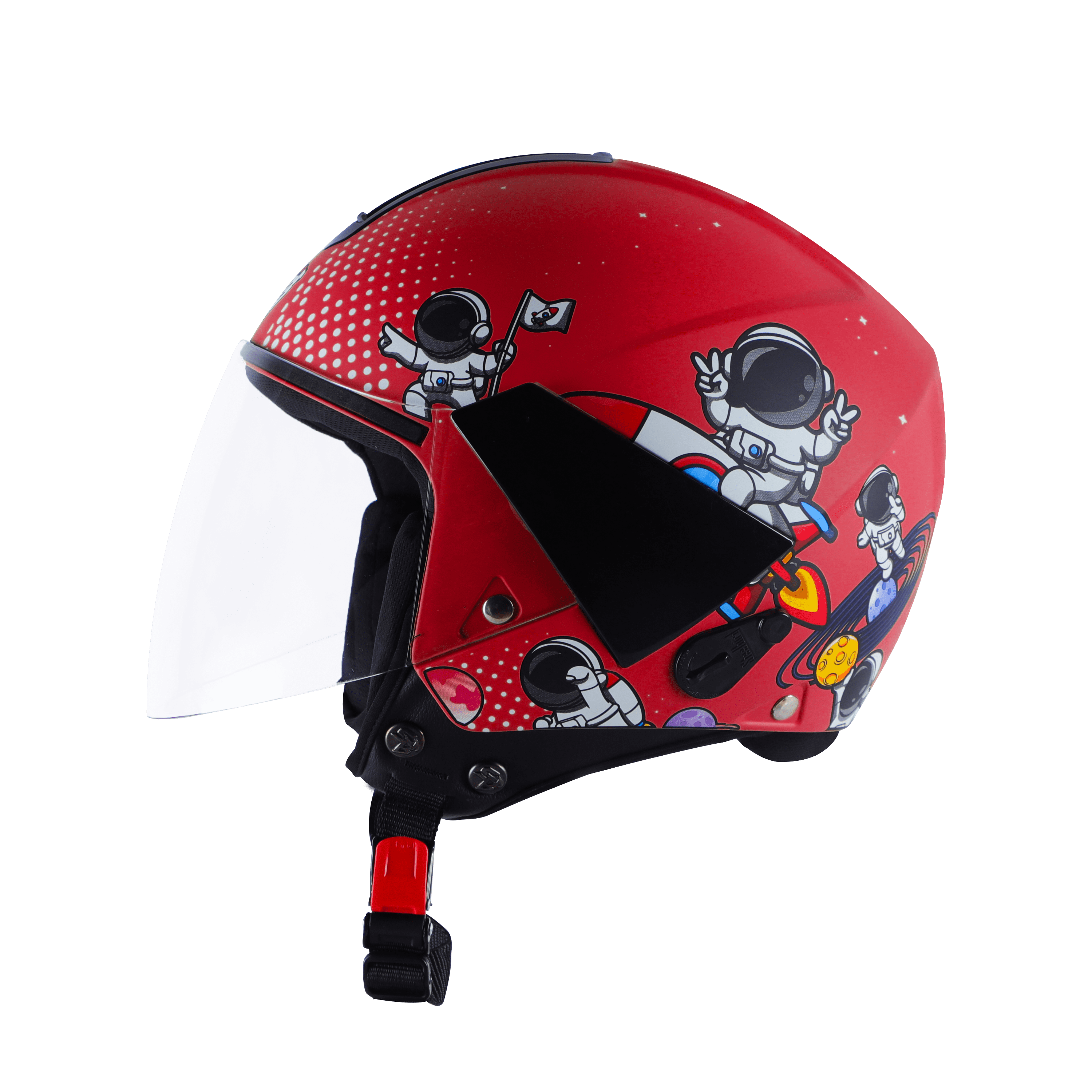 - Half Face Helmet with a bold Astronaut Red design