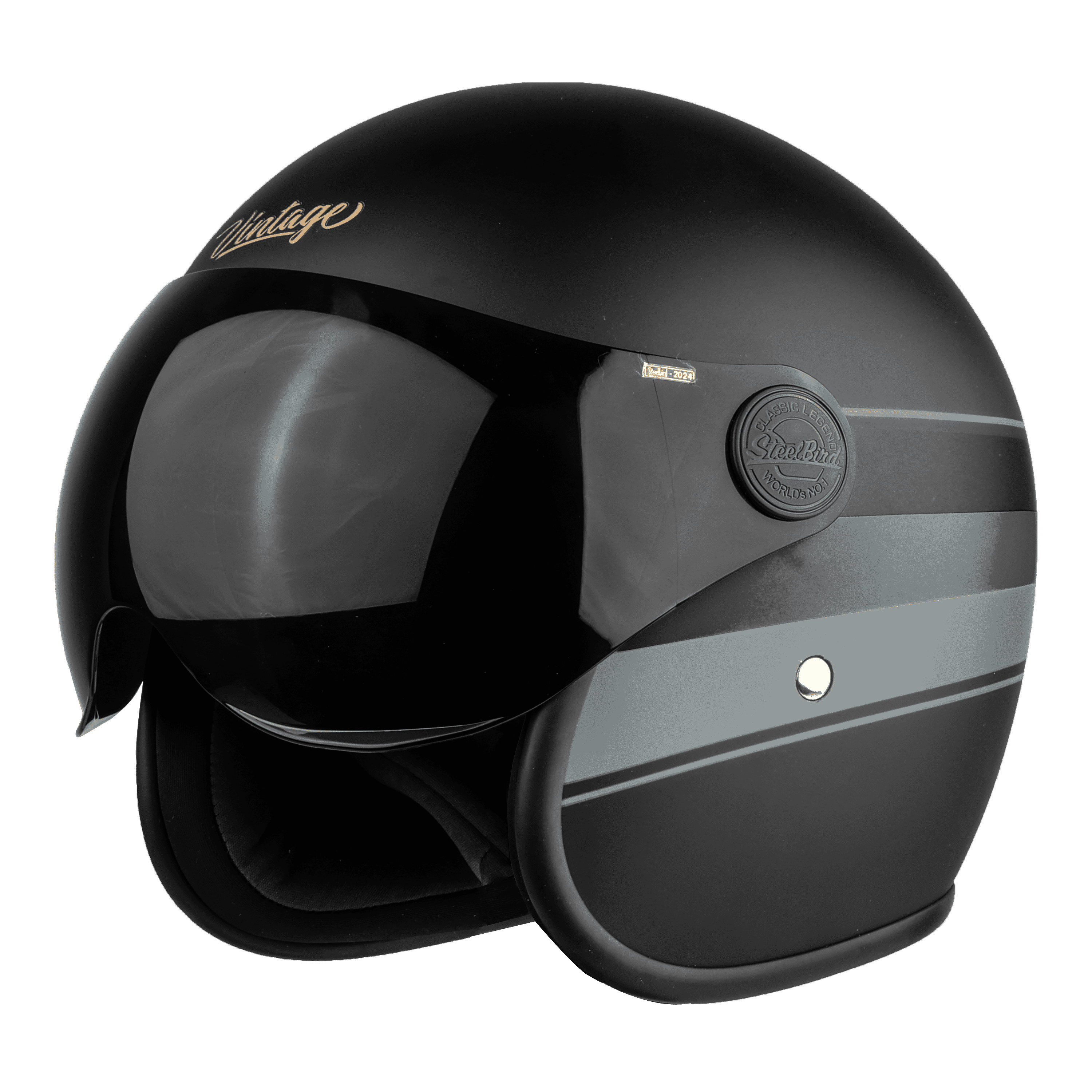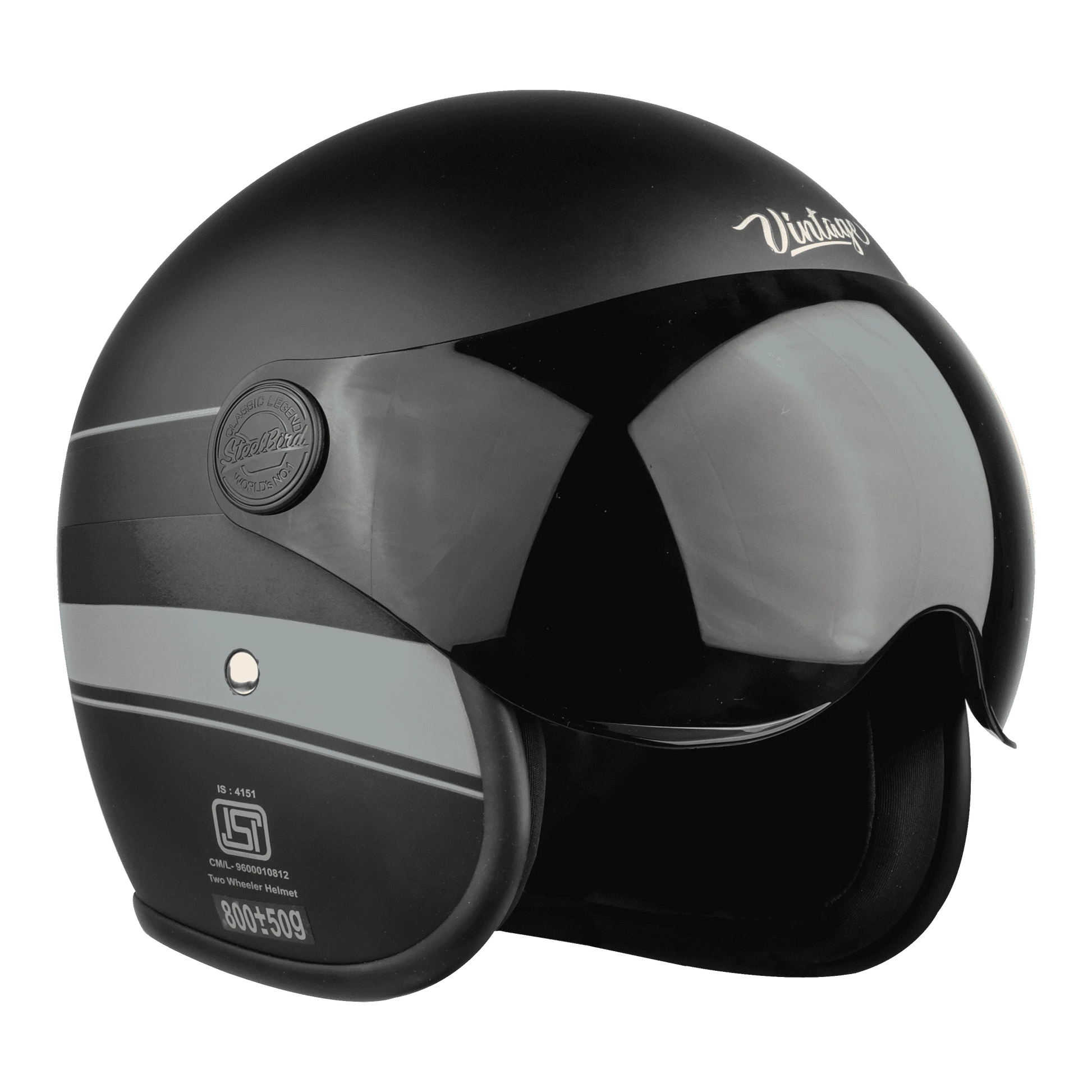 Steelbird Sbh 54 Vintage Matt Black Gray Half Face Helmet