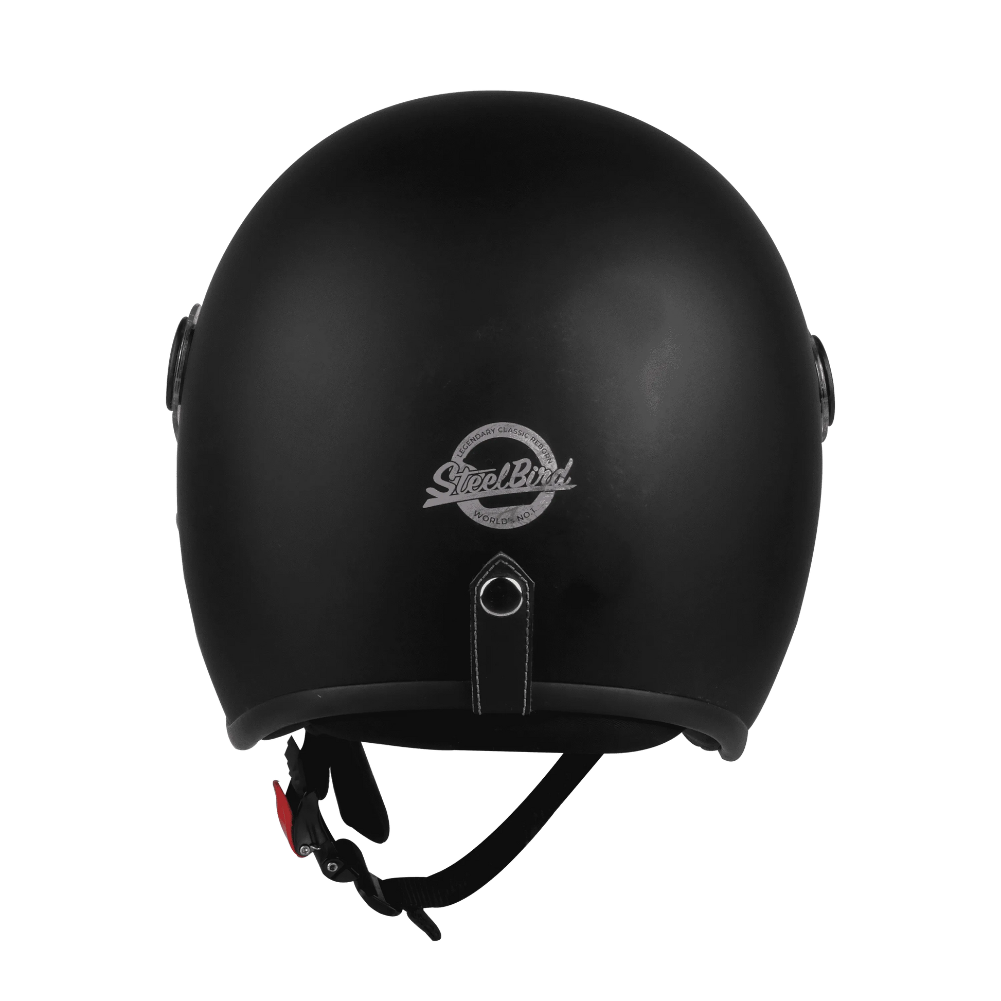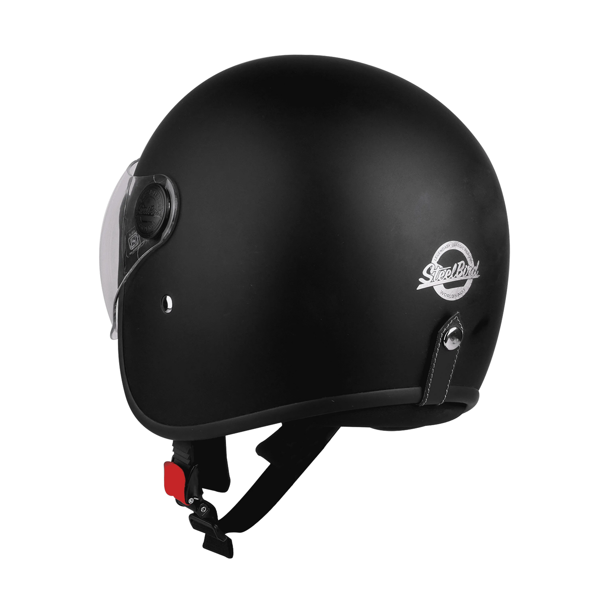 Steelbird SBH-54 Vintage Matt Black Half Face Helmet combines retro styling with practical safety features. Ideal for daily commuting, city cruising, and short touring adventures.