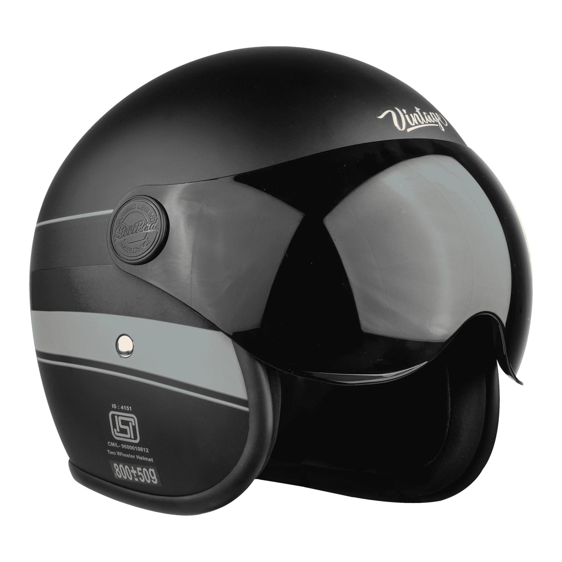 STEELBIRD Sbh 54 Vintage S1 Black Grey Half Face Helmet