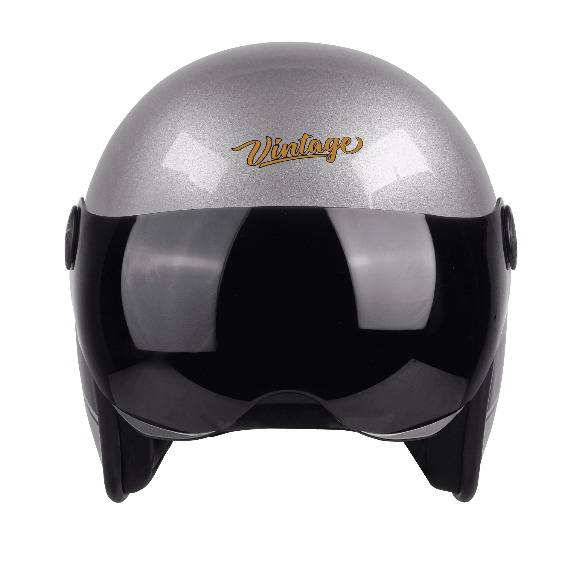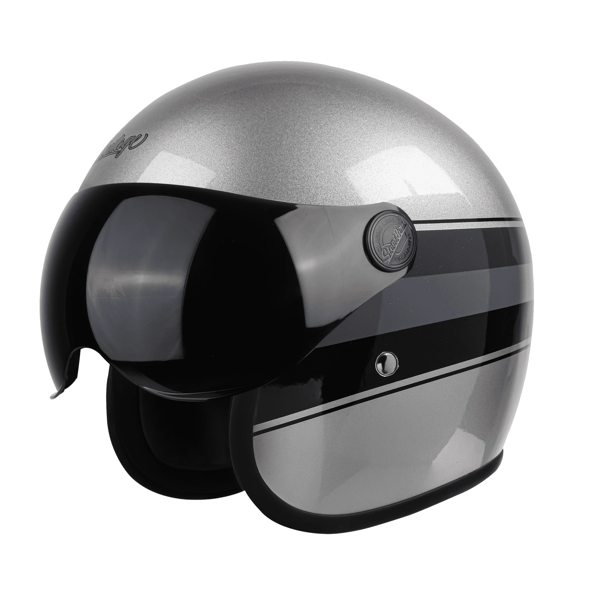STEELBIRD Sbh 54 Vintage S1 Silver Black Half Face Helmet