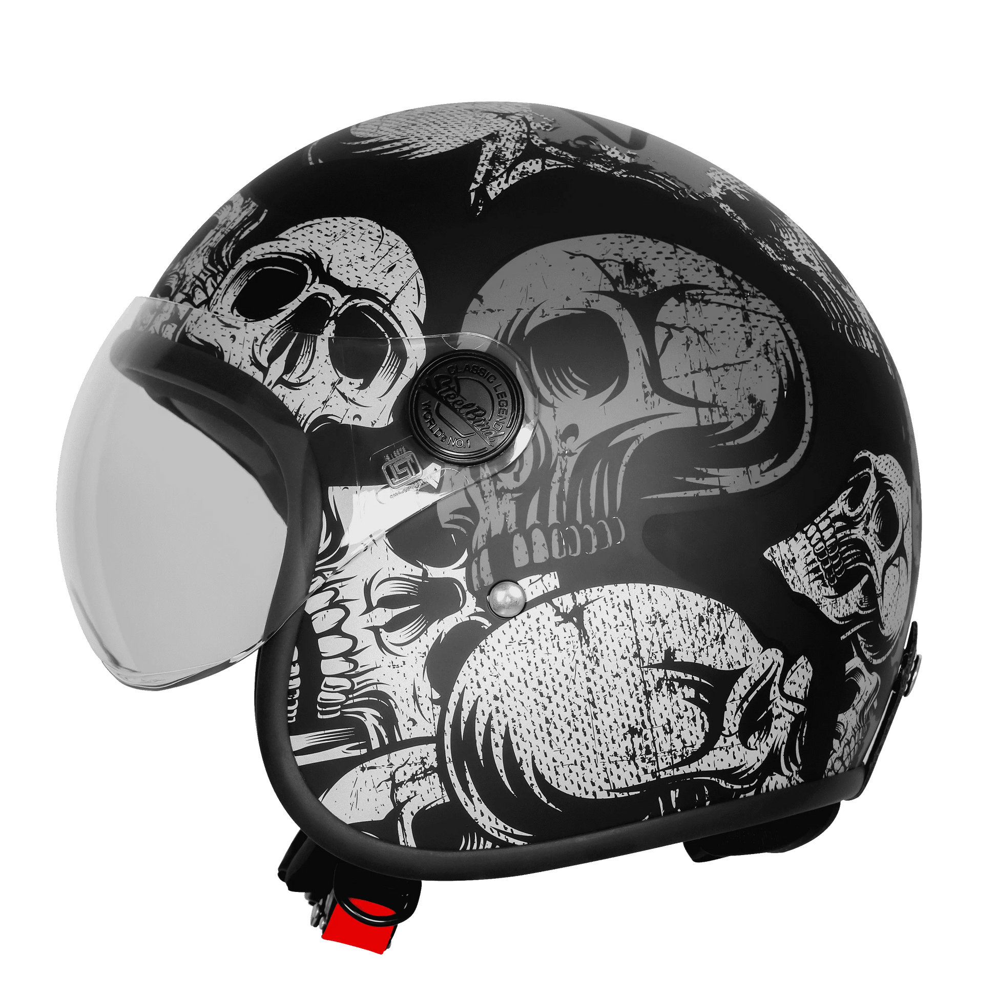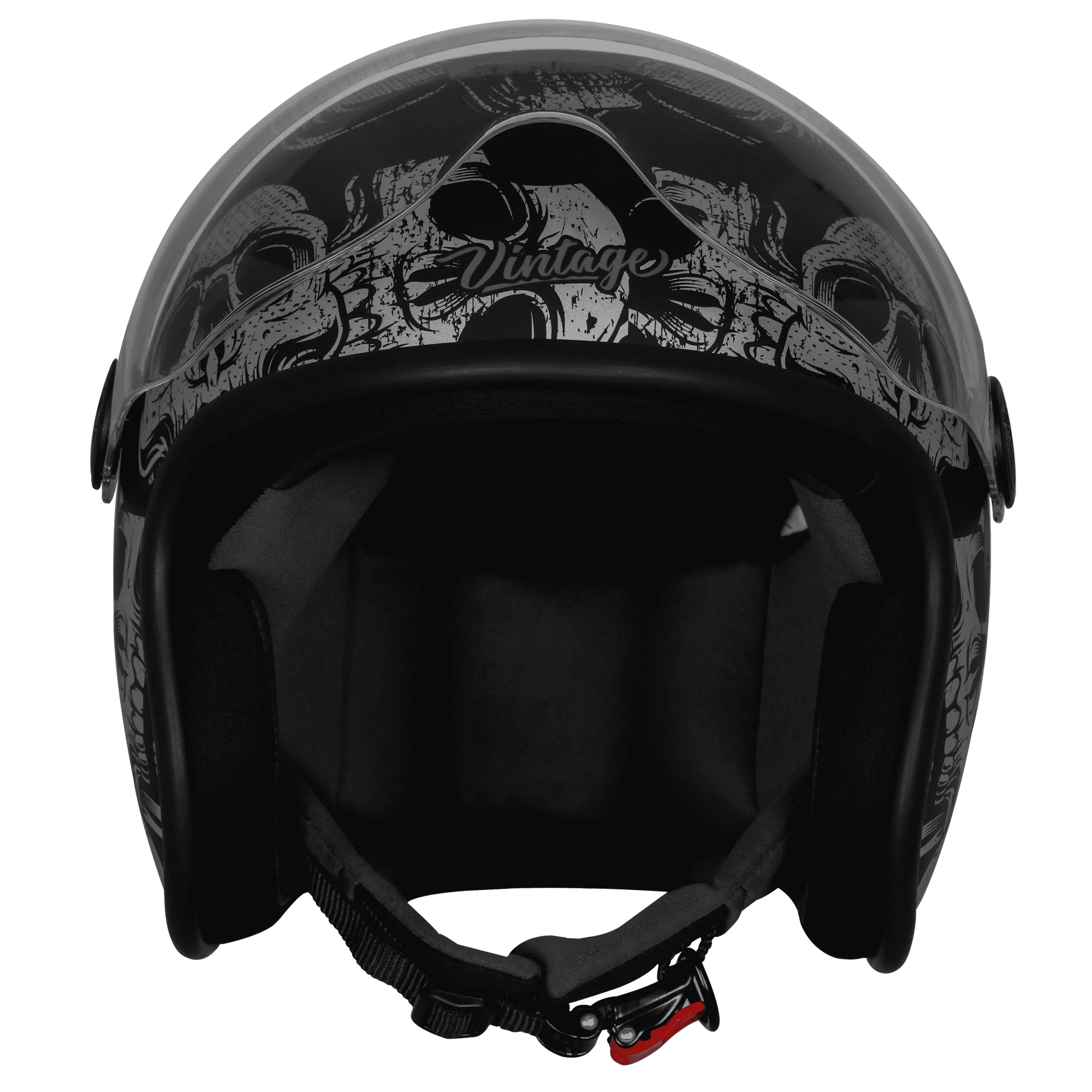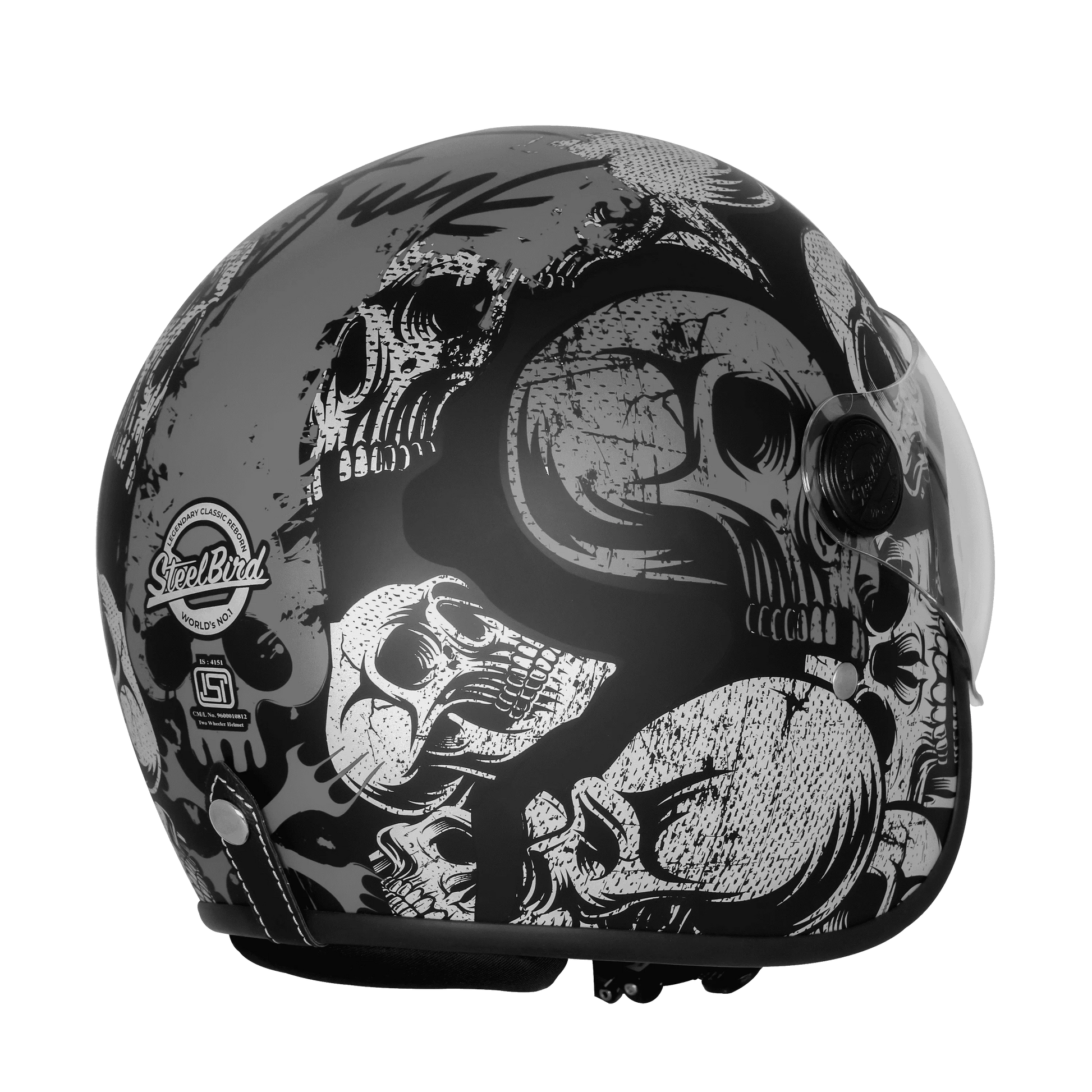 Steelbird Sbh 54 Vintage Skull Black Gray Half Face Helmet