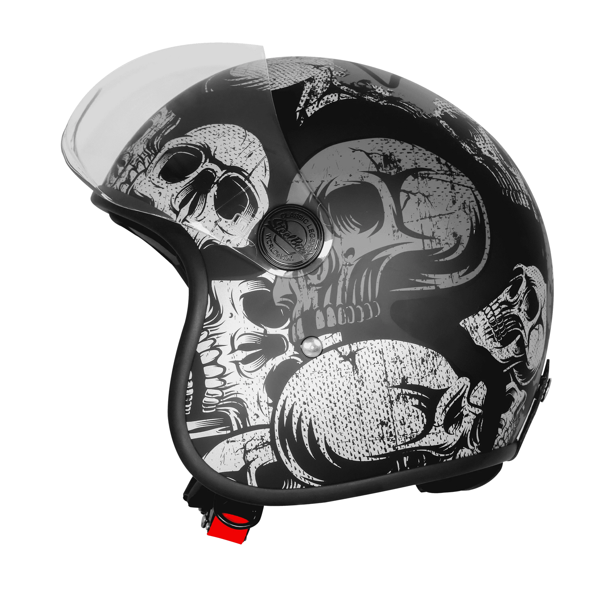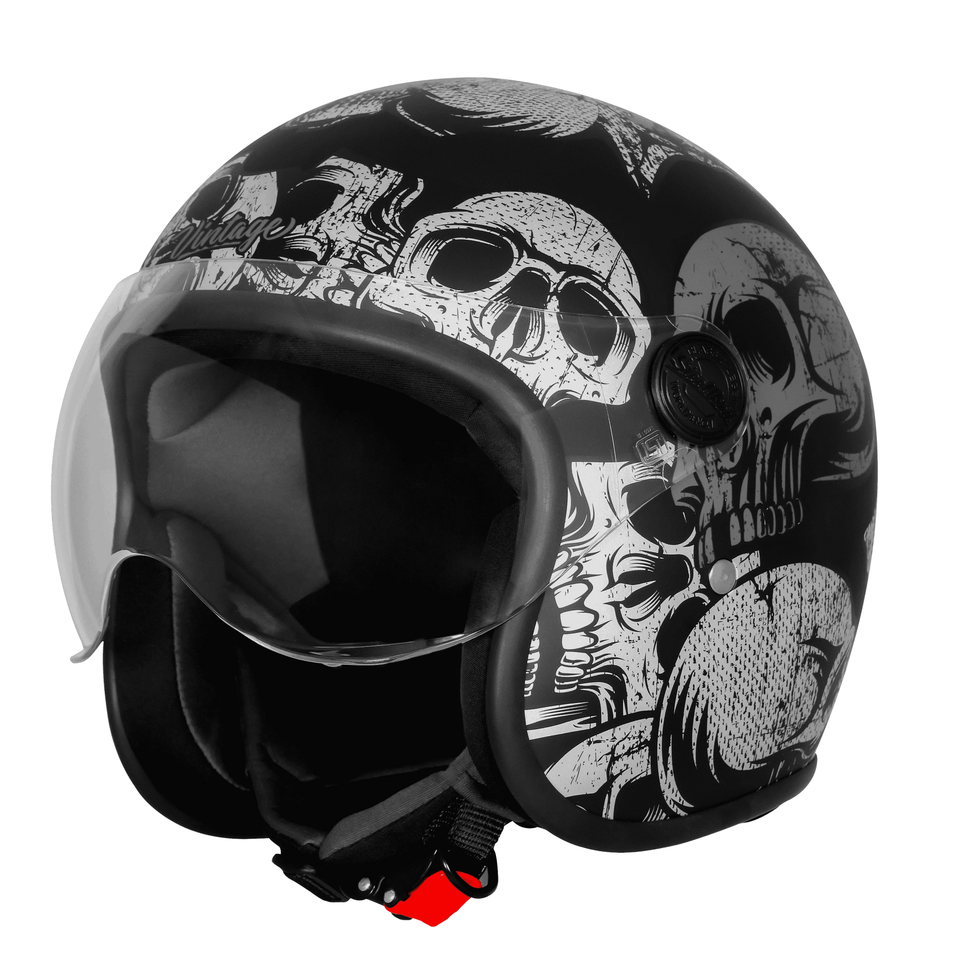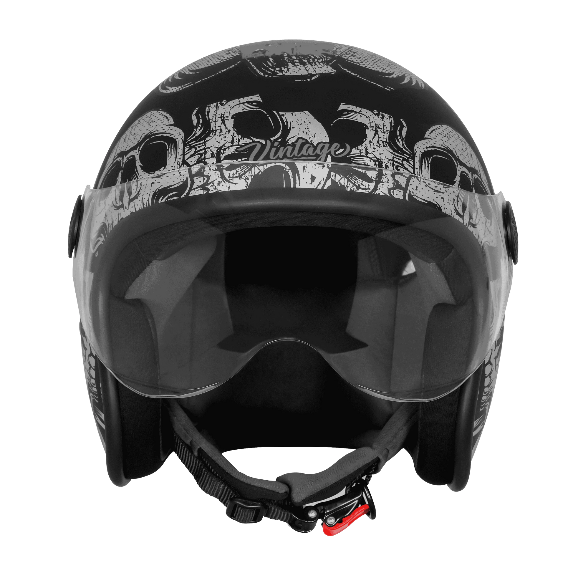 Steelbird Sbh 54 Vintage Skull Black Gray Half Face Helmet