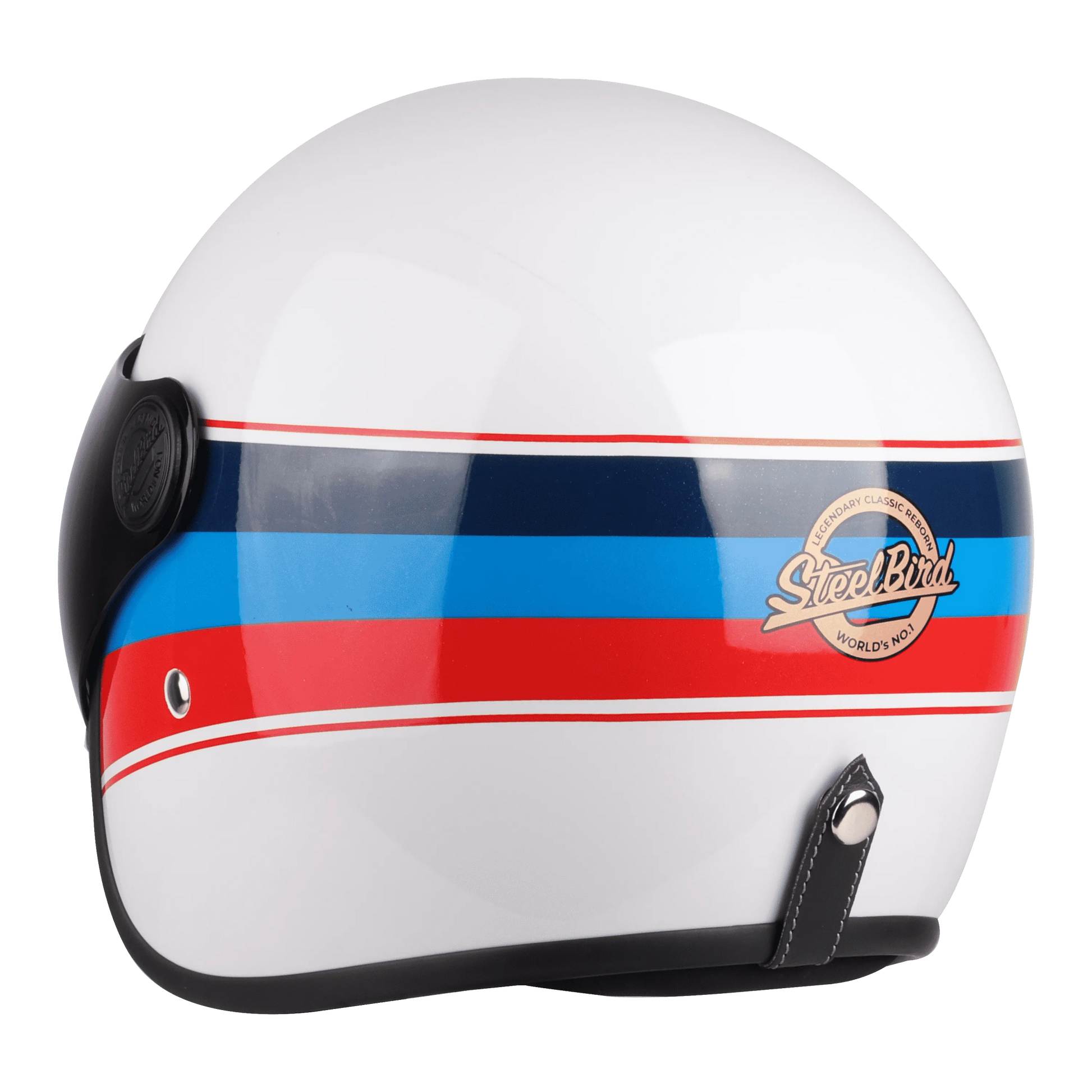 STEELBIRD SBH 54 VINTAGE MATT WHITE RED HALF FACE HELMET
