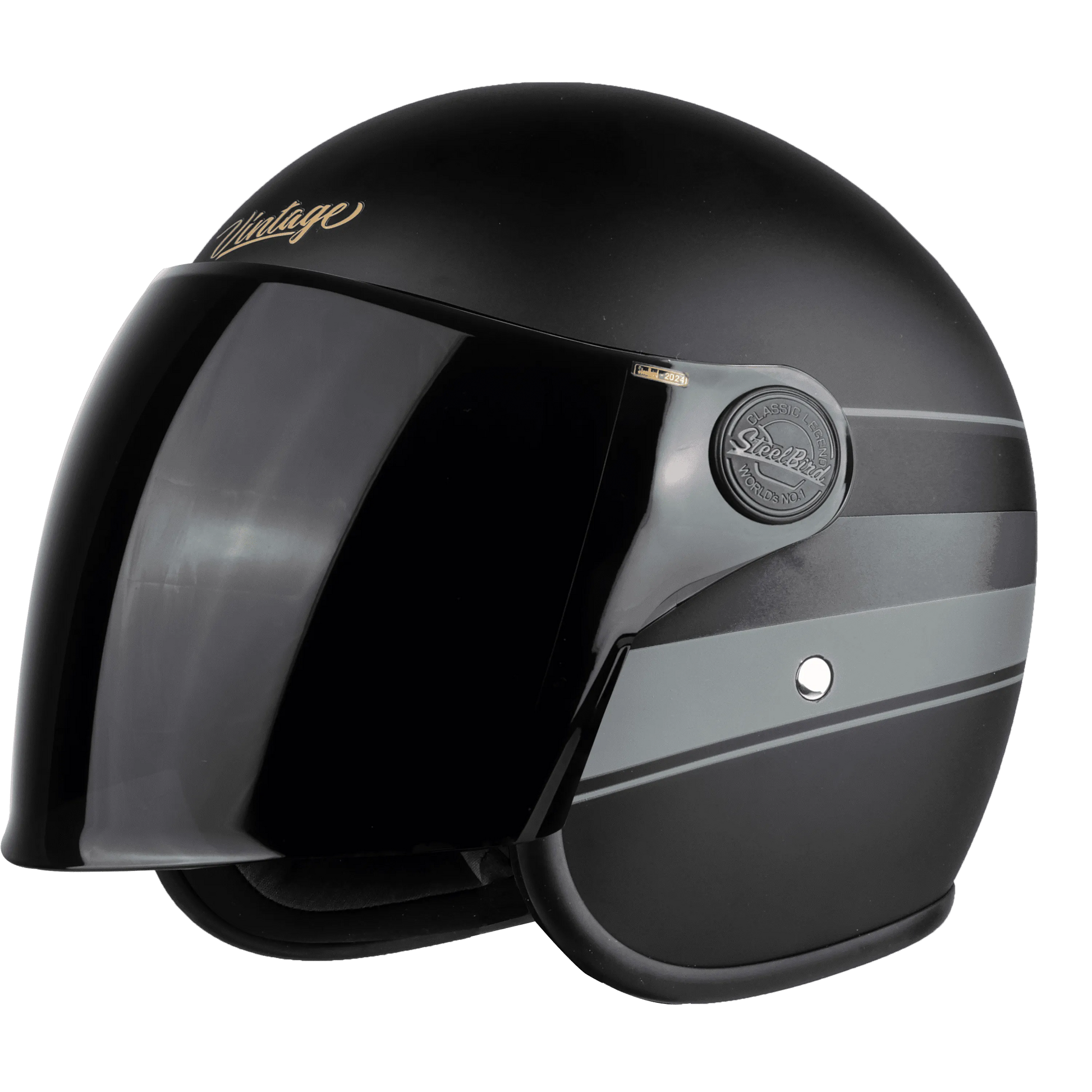 Steelbird Sbh 56 Vintage S1 Matt Black Grey Half Face Helmet