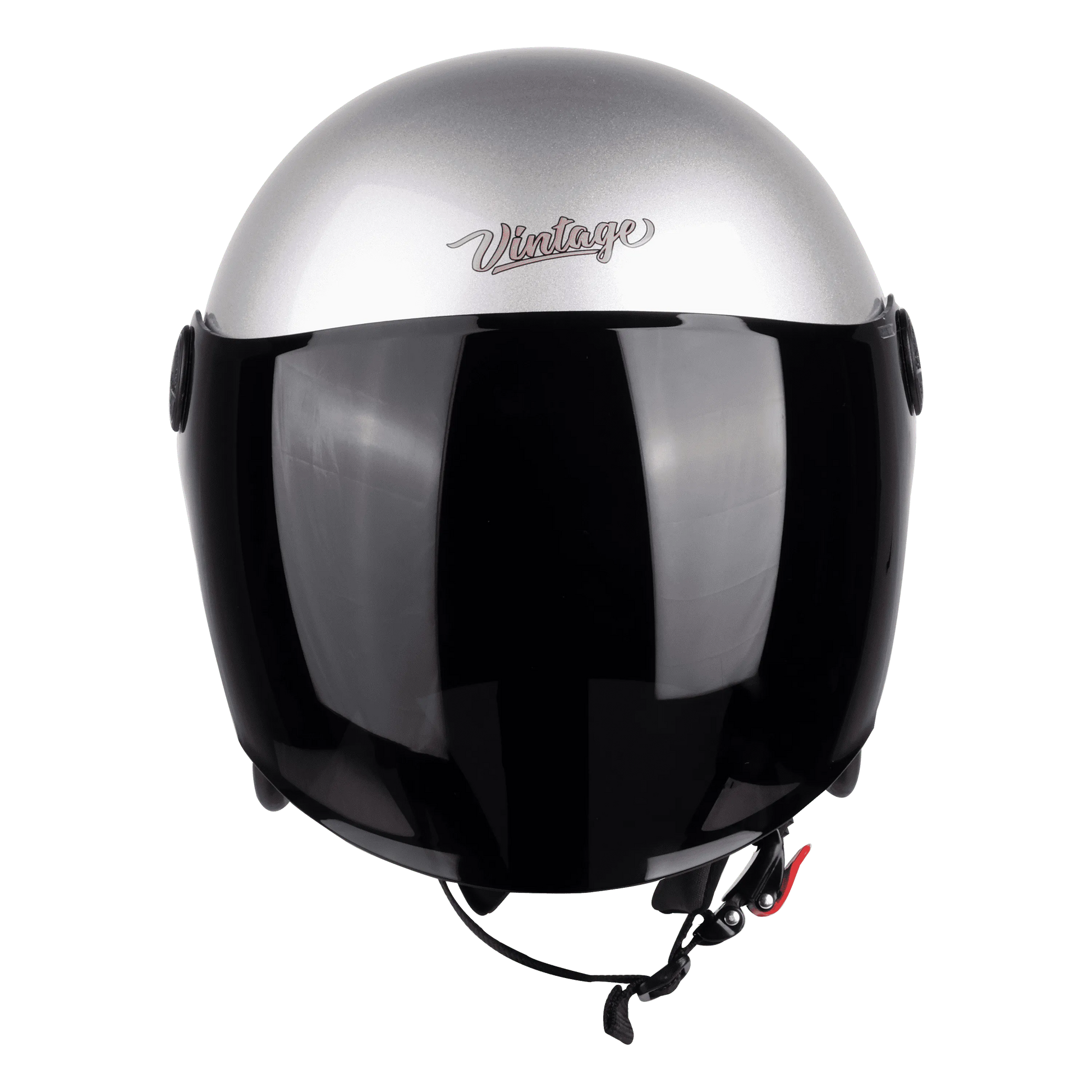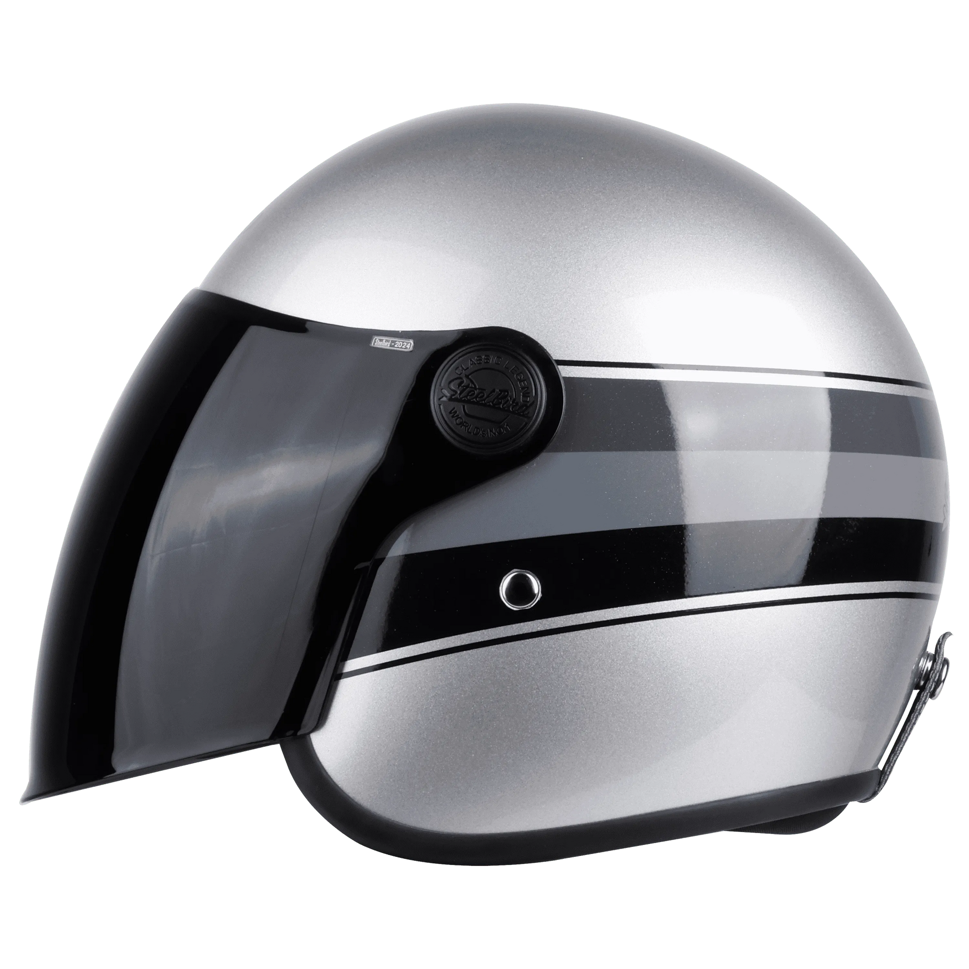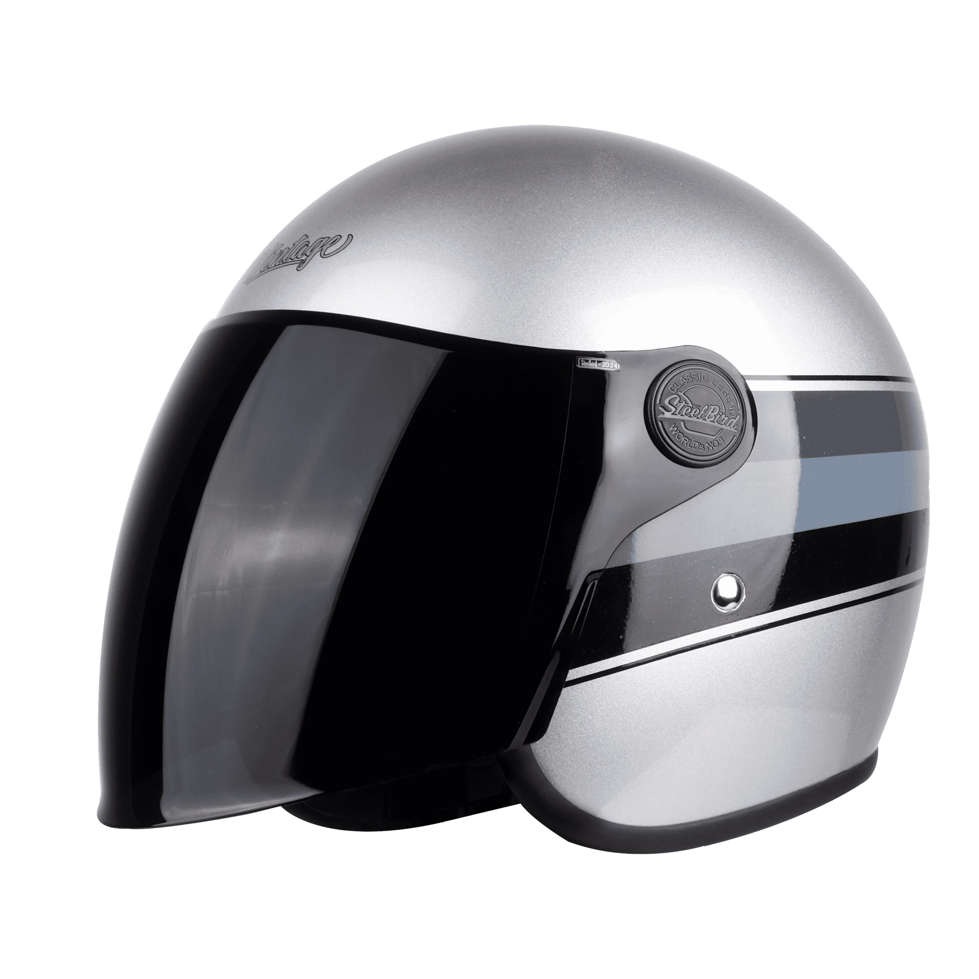 STEELBIRD Sbh 56 Vintage Silver Black Half Face Helmet
