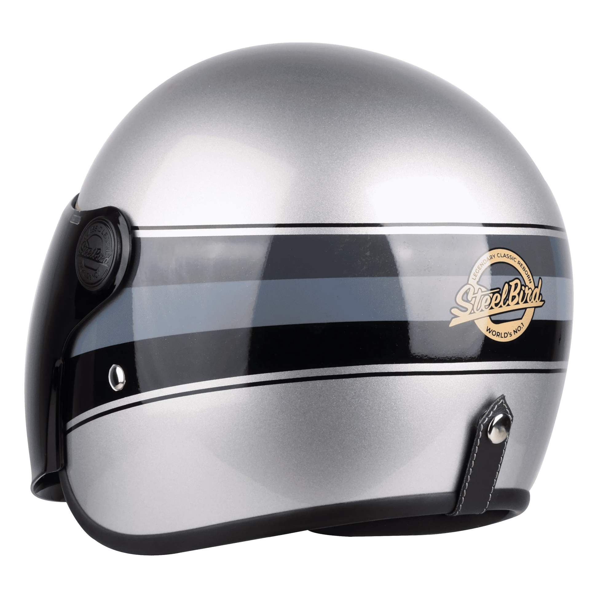 - 1 x STEELBIRD SBH 56 Vintage Silver Black Half Face Helmet