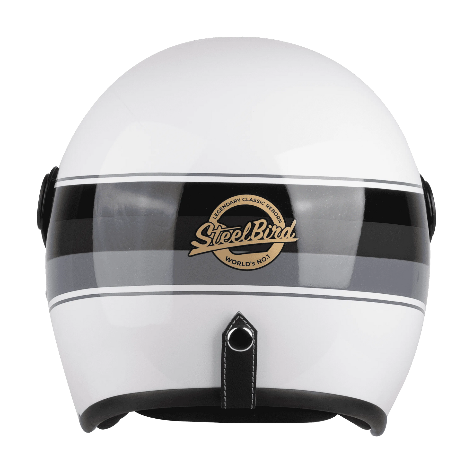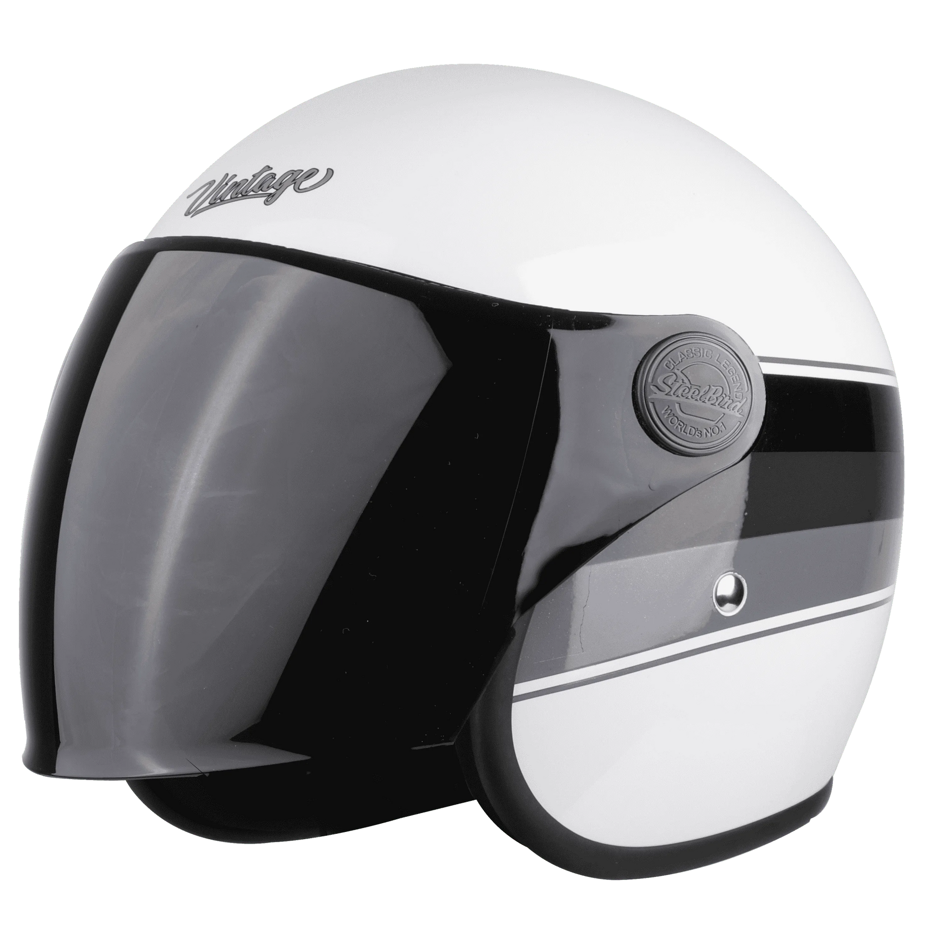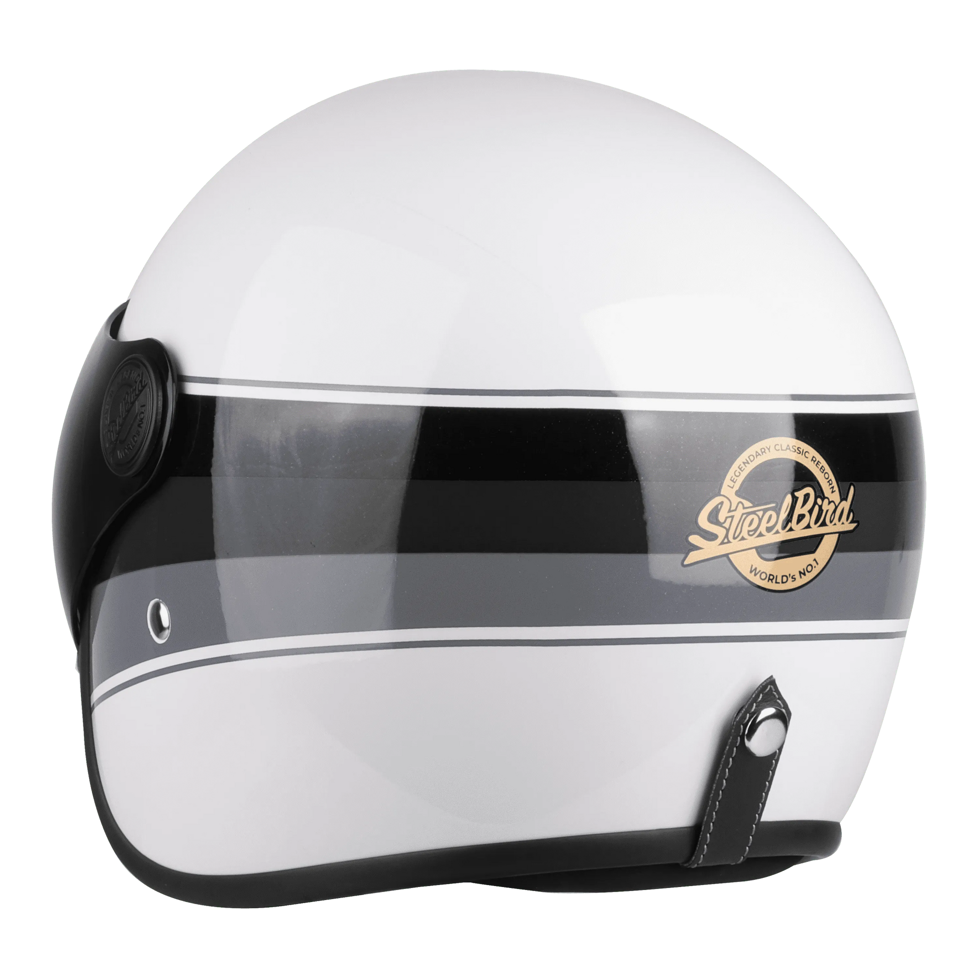 STEELBIRD Sbh 56 Vintage White Grey Half Face Helmet