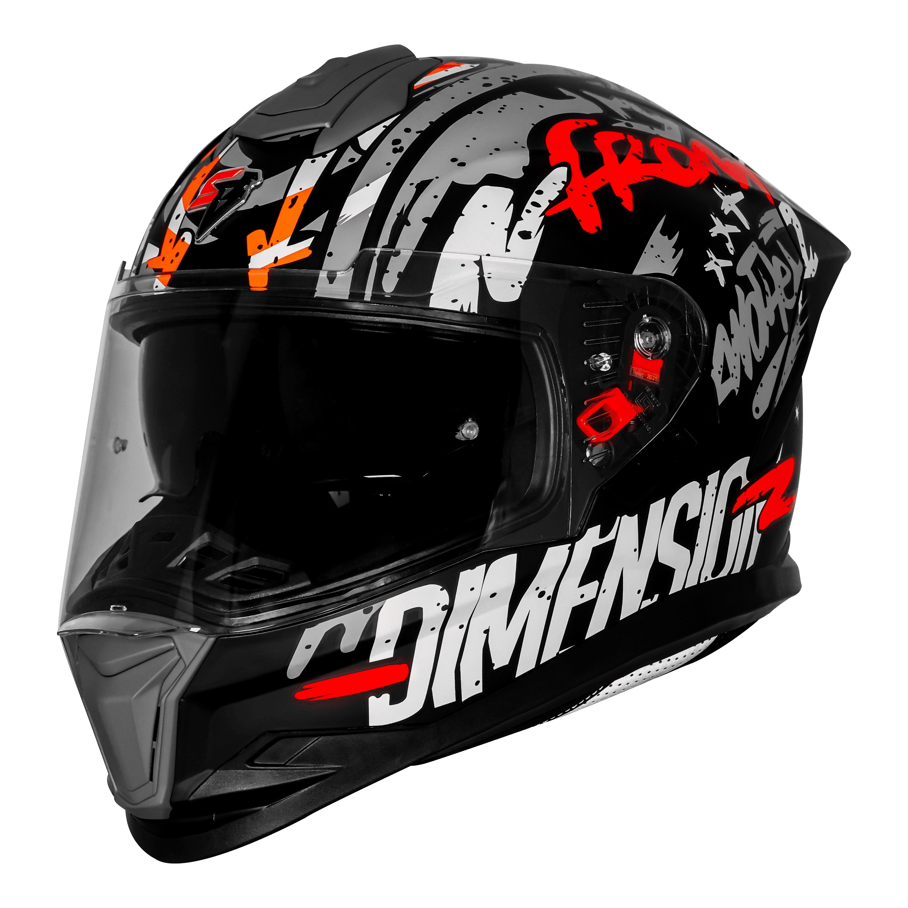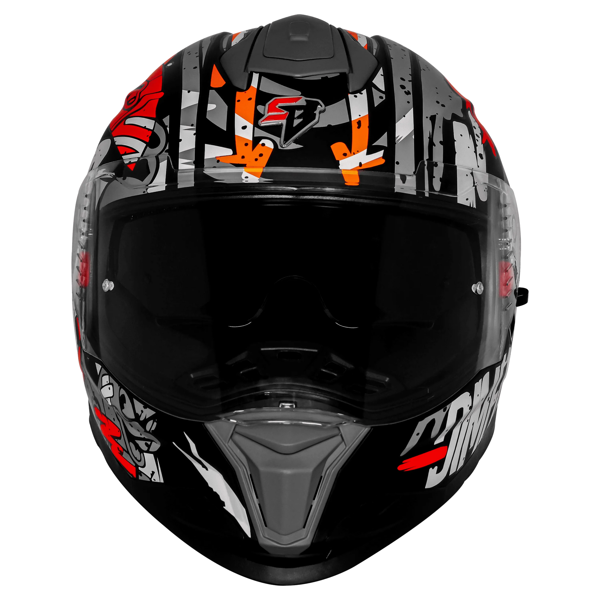 - Full Face Helmet with bold Black, White & Red fighter graphics