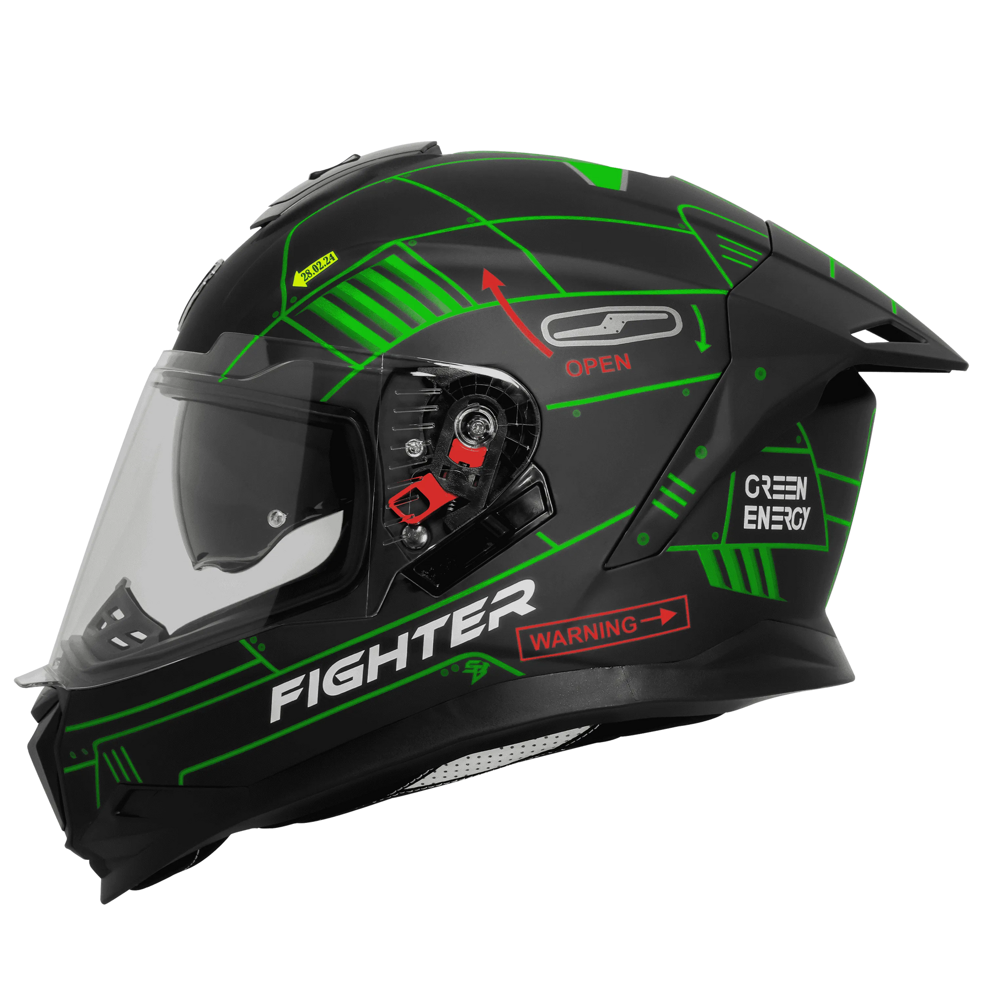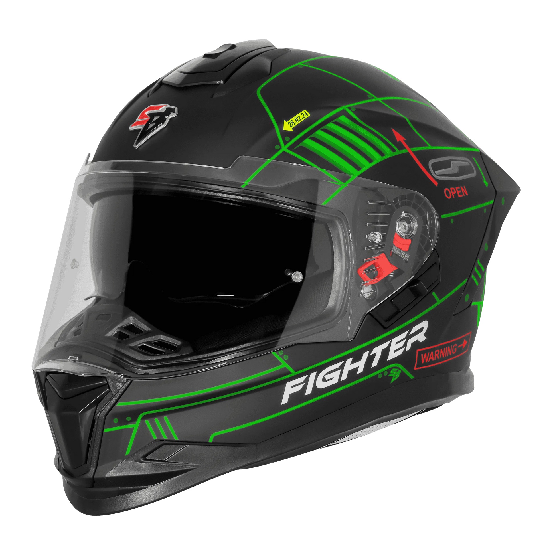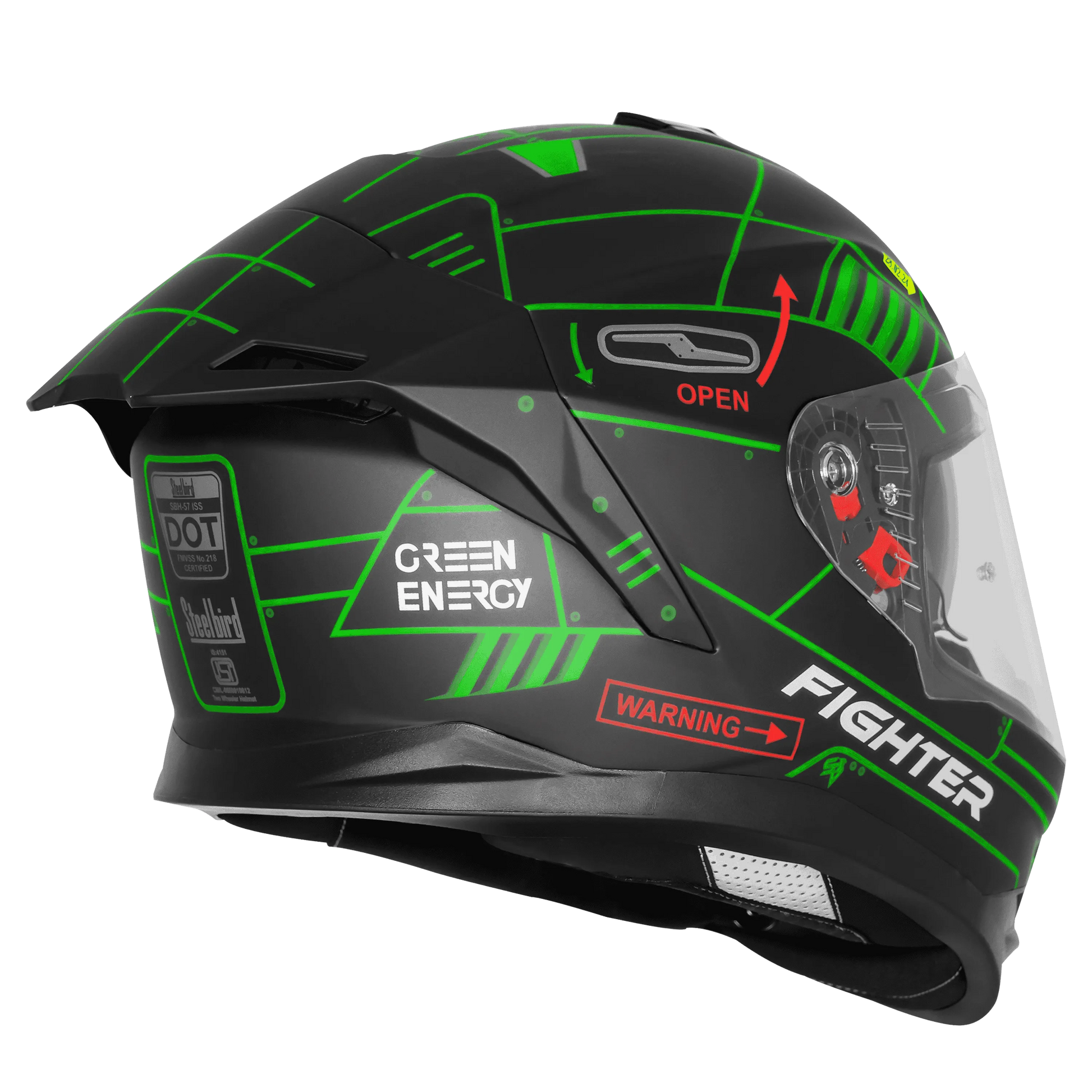 STEELBIRD SBH 57 FIGHTER F6 BLACK GREEN FULL FACE HELMET