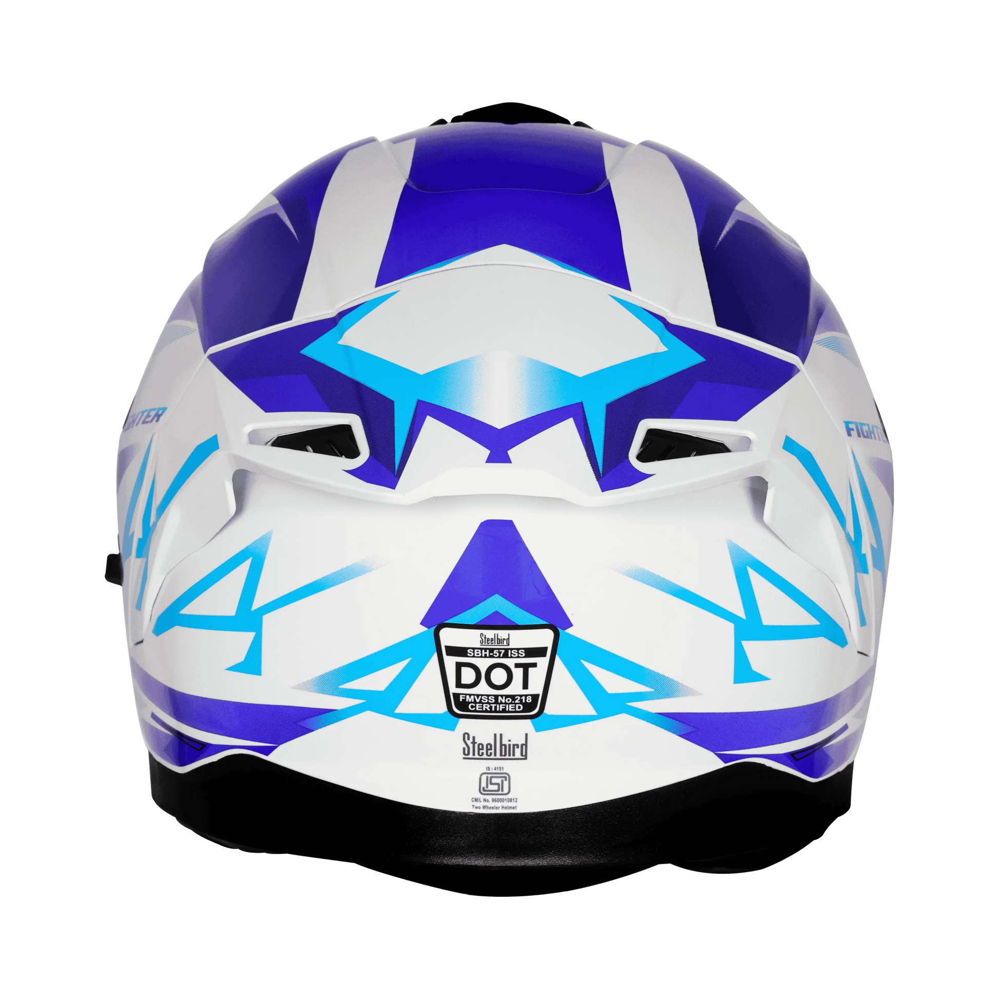 STEELBIRD Sbh 57 Iss Fighter F4 White Sky Blue Full Face Helmet