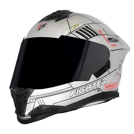 STEELBIRD Sbh 57 Fighter F6 Silver Black Full Face Helmet