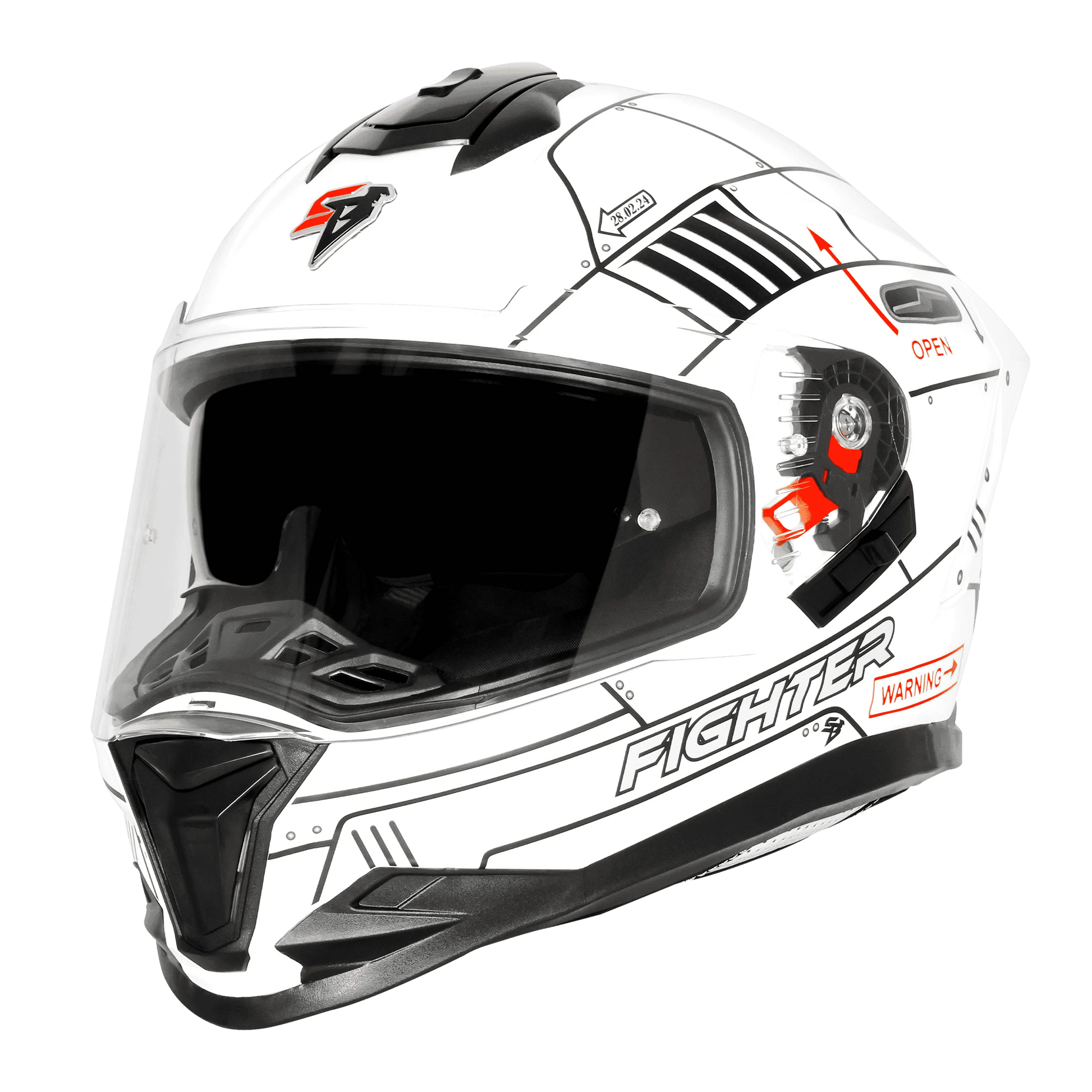 STEELBIRD Sbh 57 Iss Fighter F6 White Black Full Face Helmet