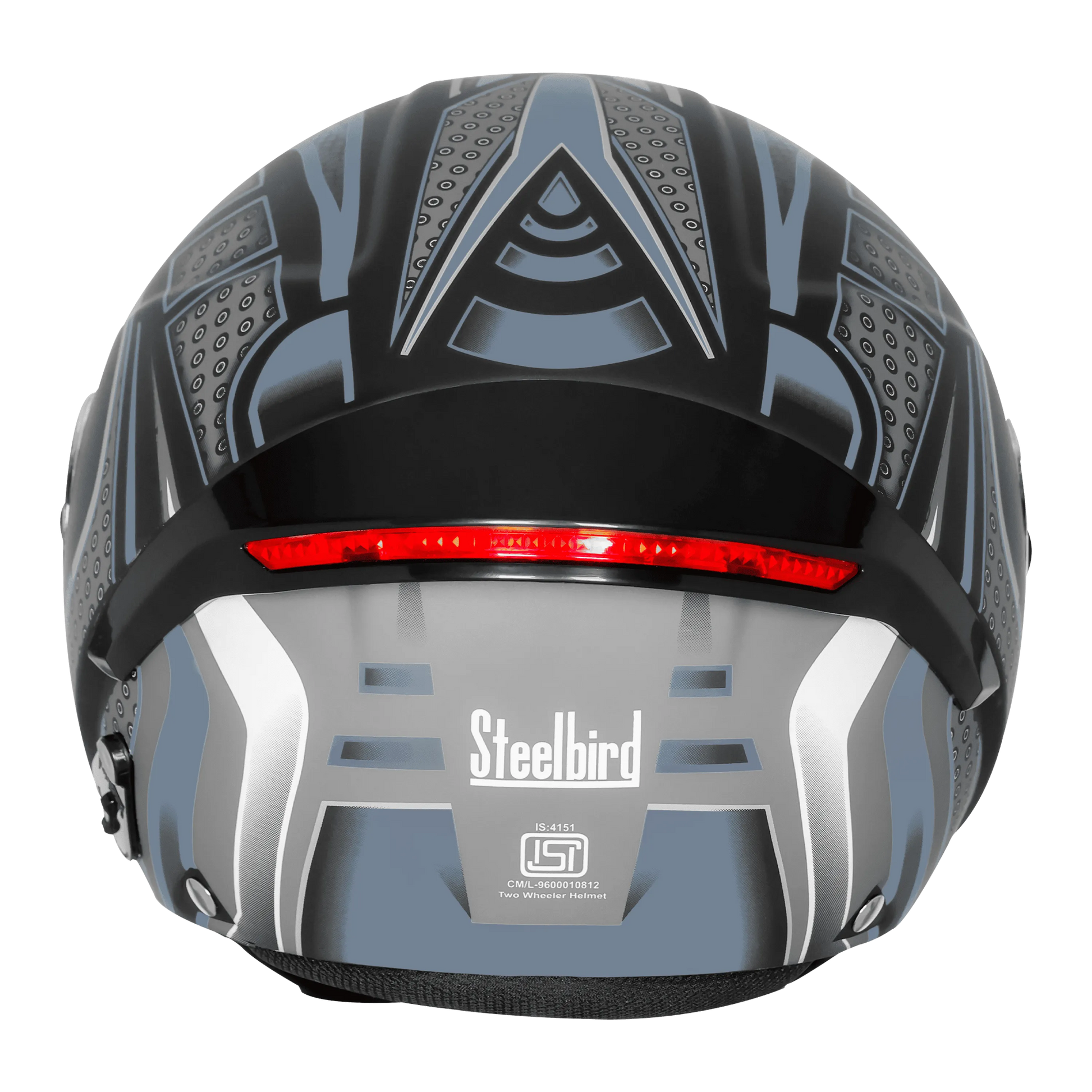 STEELBIRD SBH 64 ZIP REBEL RIDERS BLACK GREY HALF FACE HELMET
