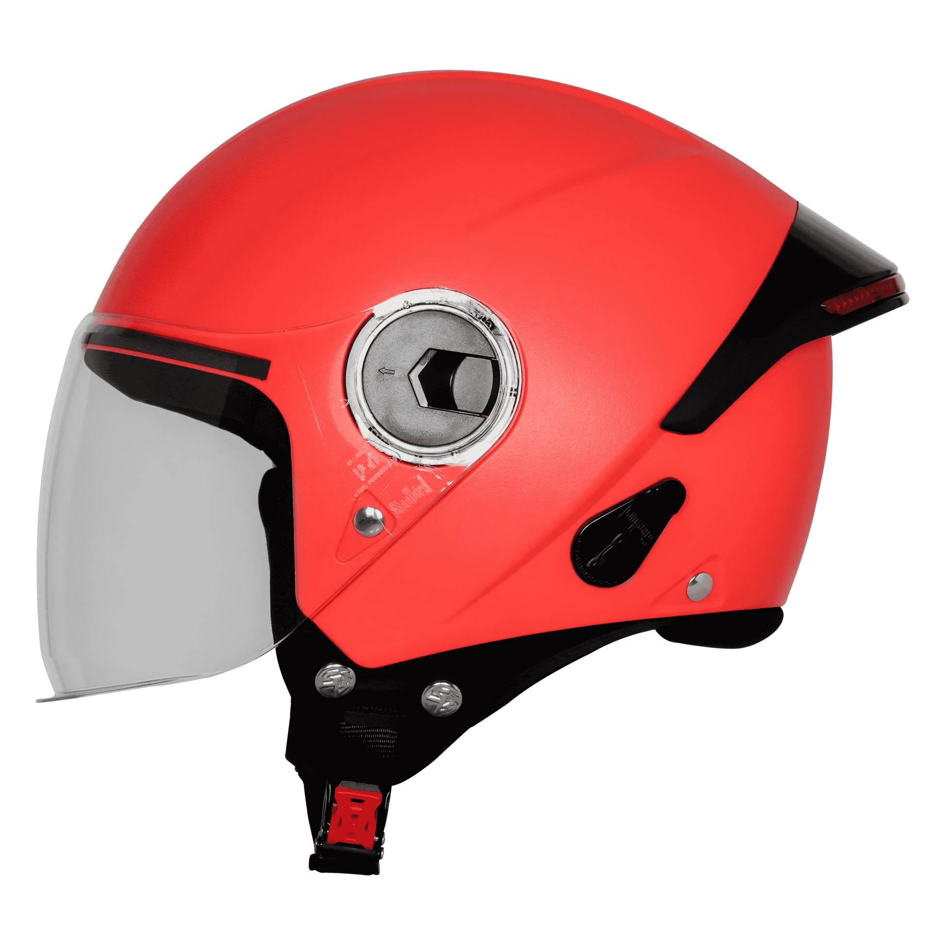 Upgrade your ride with STEELBIRD Sbh 64 Zip RF Cherry Red Half Face Helmet.