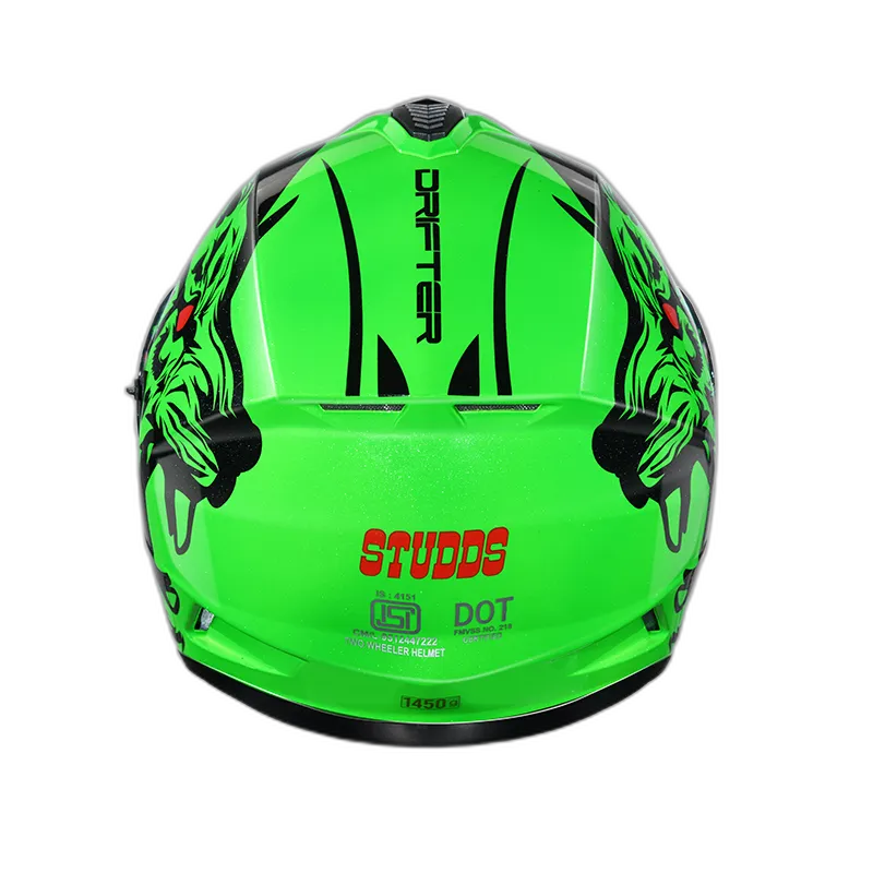 STUDDS Drifter D2 Green N9 Black Full Face Helmet