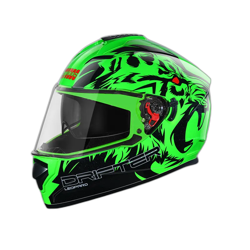 Drifter is a full-face helmet with a high-impact outer shell along with product features like an aerodynamic design, regulated density EPS, dynamic ventilation system with chin and top air vents and hot air exhausts, hypoallergenic and replaceable liner, removable and replaceable lower trim, silicone-coated dual visor with quick release chin strap. It also comes with a special dual visor lever. Drifter comes in various sizes and color options