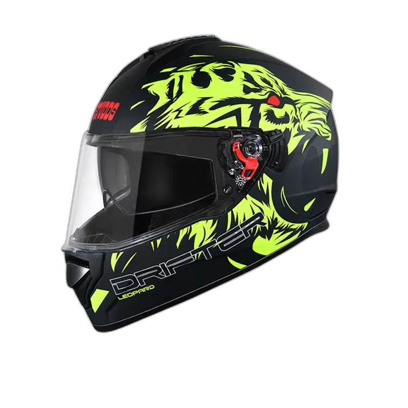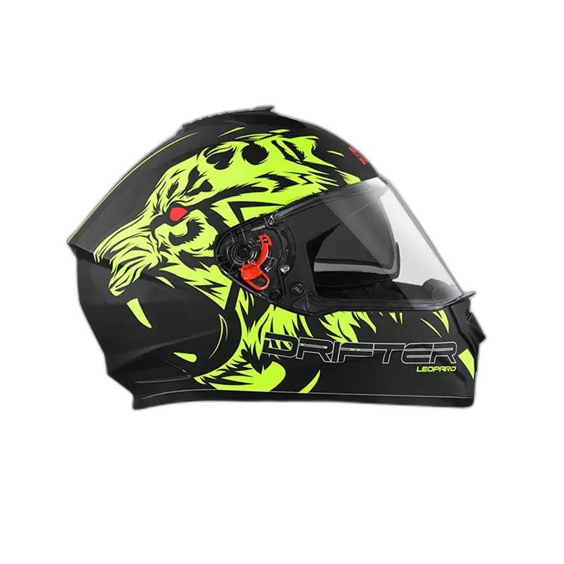 Drifter is a full-face helmet with a high-impact outer shell along with product features like an aerodynamic design, regulated density EPS, dynamic ventilation system with chin and top air vents and hot air exhausts, hypoallergenic and replaceable liner, removable and replaceable lower trim, silicone-coated dual visor with quick release chin strap. It also comes with a special dual visor lever. Drifter comes in various sizes and color options