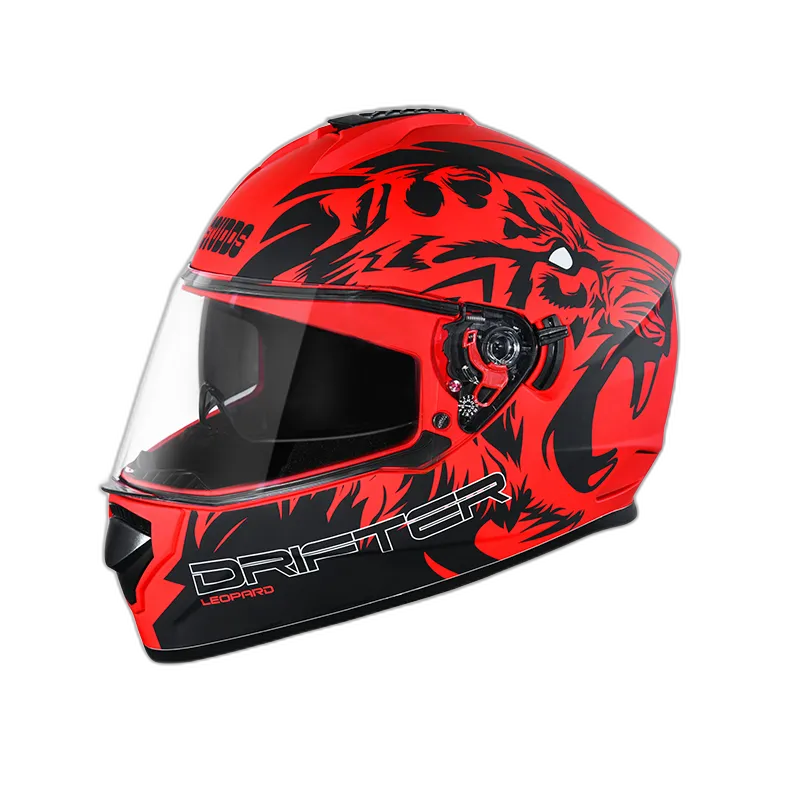 Drifter is a full-face helmet with a high-impact outer shell along with product features like an aerodynamic design, regulated density EPS, dynamic ventilation system with chin and top air vents and hot air exhausts, hypoallergenic and replaceable liner, removable and replaceable lower trim, silicone-coated dual visor with quick release chin strap. It also comes with a special dual visor lever. Drifter comes in various sizes and color options
