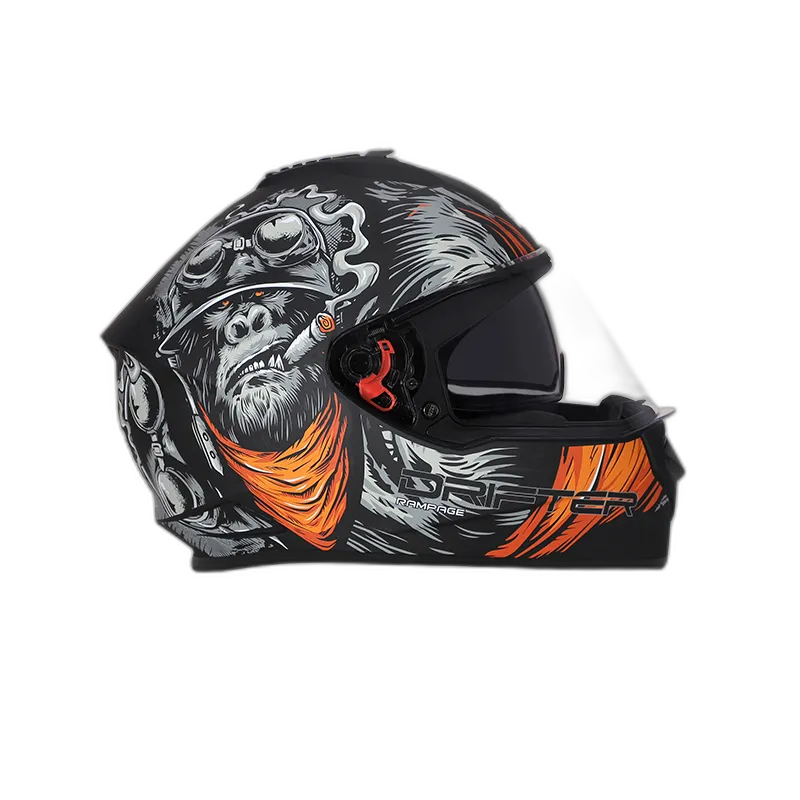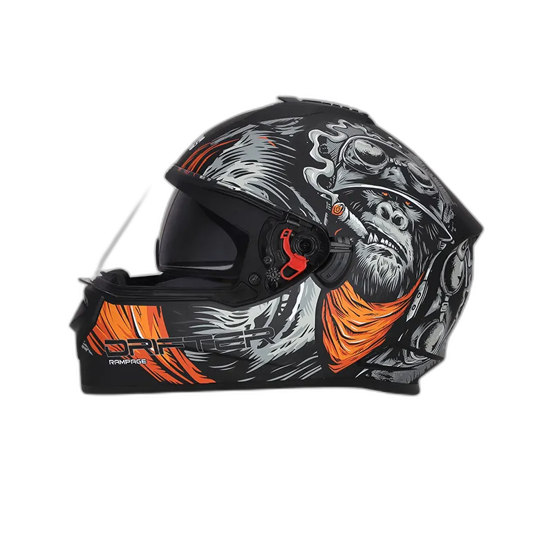 Drifter is a full-face helmet with a high-impact outer shell along with product features like an aerodynamic design, regulated density EPS, dynamic ventilation system with chin and top air vents and hot air exhausts, hypoallergenic and replaceable liner, removable and replaceable lower trim, silicone-coated dual visor with quick release chin strap. It also comes with a special dual visor lever. Drifter comes in various sizes and color options