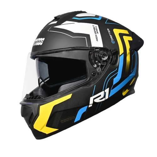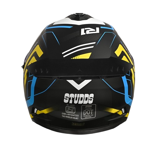 Ride with confidence and stand out in style with the STUDDS Drifter D4 R1 Matt Black Yellow N6 Full Face Helmet.