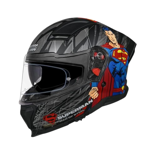 Ride safe and stylish – get the Studds Helios Superman Edition Black Blue Full Face Helmet today!