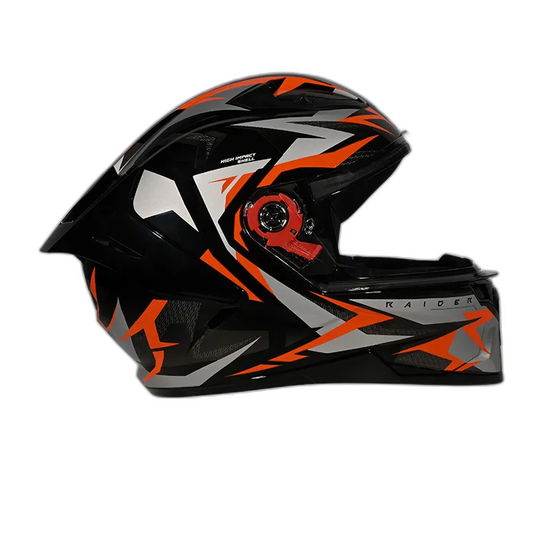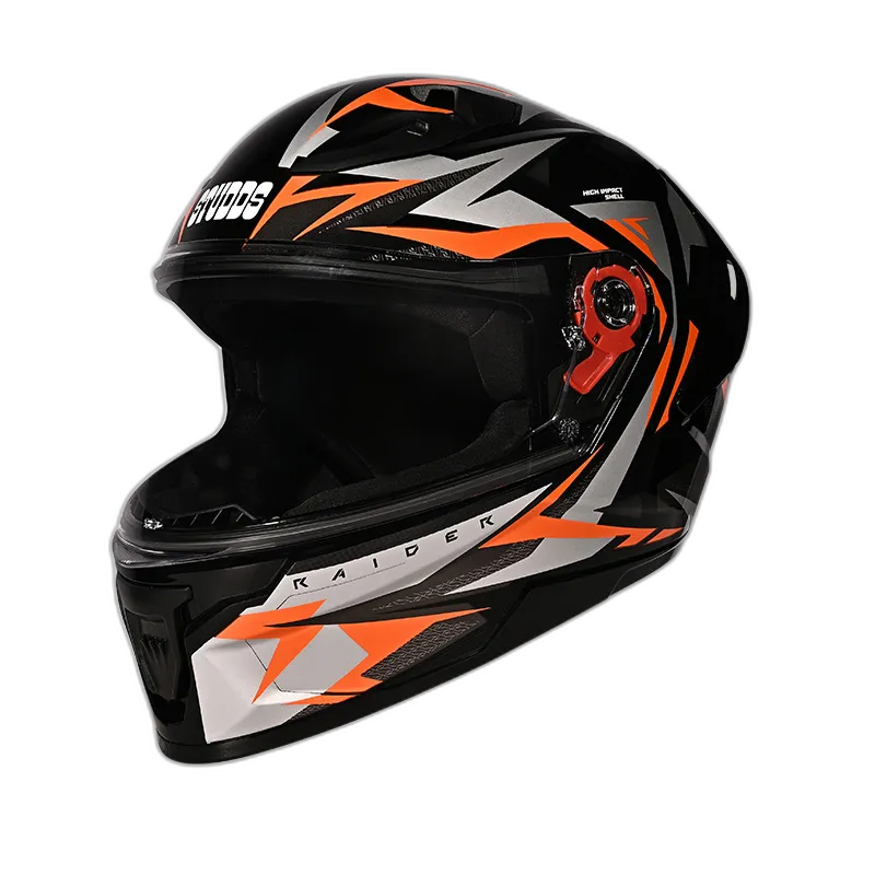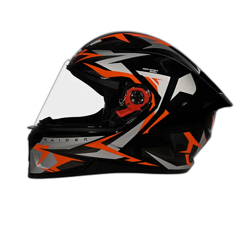 Introducing the Studds Raider Street Full Face Helmet, a pinnacle of safety and sophistication for discerning riders. Meticulously crafted with a high-impact thermoplastic shell, this helmet seamlessly combines durability with sleek design. Engineered for urban environments, its aerodynamic construction minimizes wind resistance. The scratch-resistant visor ensures optimal visibility, complemented by a dynamic ventilation system for a comfortable ride. ISI and DOT certifications underscore its commitment to uncompromising safety standards. The hypoallergenic padding guarantees a secure fit, making the Studds Raider Street the epitome of refined protection for riders who demand excellence.