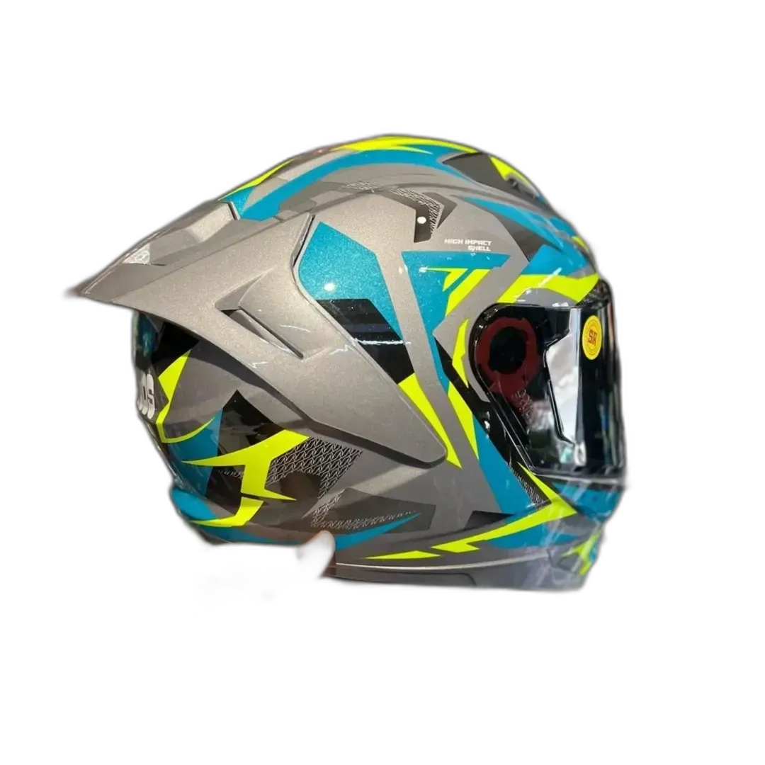 Introducing the Studds Raider Street Full Face Helmet, a pinnacle of safety and sophistication for discerning riders. Meticulously crafted with a high-impact thermoplastic shell, this helmet seamlessly combines durability with sleek design. Engineered for urban environments, its aerodynamic construction minimizes wind resistance. The scratch-resistant visor ensures optimal visibility, complemented by a dynamic ventilation system for a comfortable ride. ISI and DOT certifications underscore its commitment to uncompromising safety standards. The hypoallergenic padding guarantees a secure fit, making the Studds Raider Street the epitome of refined protection for riders who demand excellence.