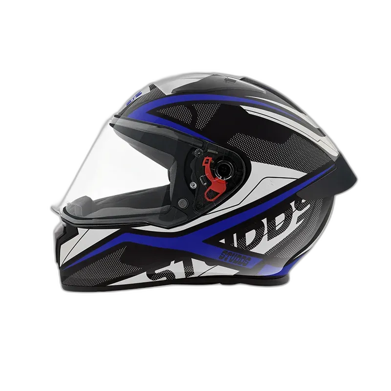 Thunder is one of the most stylish and aggressive helmets from STUDDS. Its aerodynamic design complimented with spoiler and attractive solid colour gives it a perfect look. Thunder is a full face helmet with aerodynamic design , dynamic ventilation system, quick release visor and chin strap.