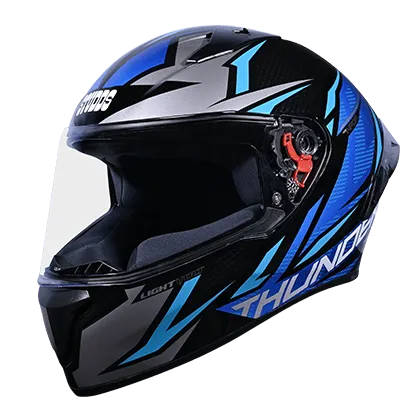 Thunder is one of the most stylish and aggressive helmets from STUDDS. Its aerodynamic design complimented with spoiler and attractive solid colour gives it a perfect look. Thunder is a full face helmet with aerodynamic design , dynamic ventilation system, quick release visor and chin strap.
