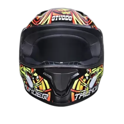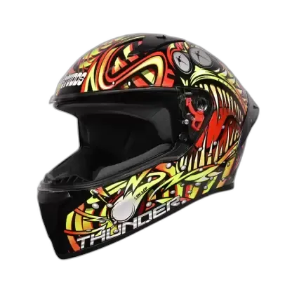 Thunder is one of the most stylish and aggressive helmets from STUDDS. Its aerodynamic design complimented with spoiler and attractive solid colour gives it a perfect look. Thunder is a full face helmet with aerodynamic design , dynamic ventilation system, quick release visor and chin strap.
